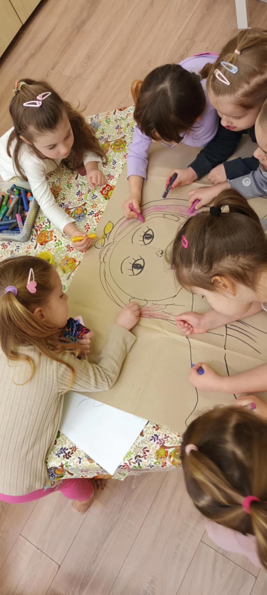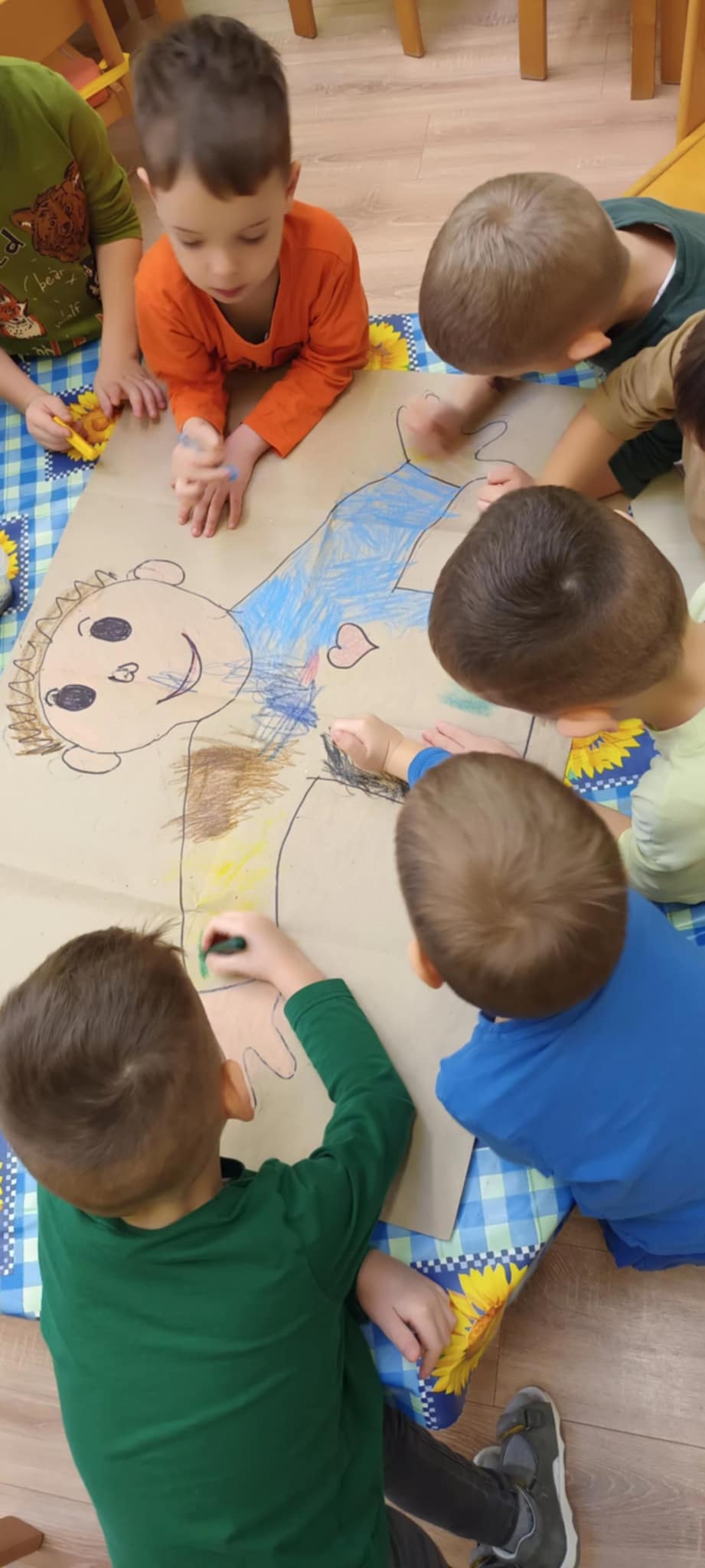 Megbeszéltük, hogy célunk az is, hogy egészségesek legyünk és ennek érdekében sok sok varázslást fogunk alkalmazni: tornázás, mozgás a friss levegőn, testünk ápolása. Megalkottuk az Örömke nevű gyerekeket kreatív alkotás keretében. Körberajzoltunk egy kislányt és egy kisfiút, majd csapatmunkában felrajzolták az érzékszerveket. Hozzájuk pedig egészséges ételek képeit ragasztottuk fel.