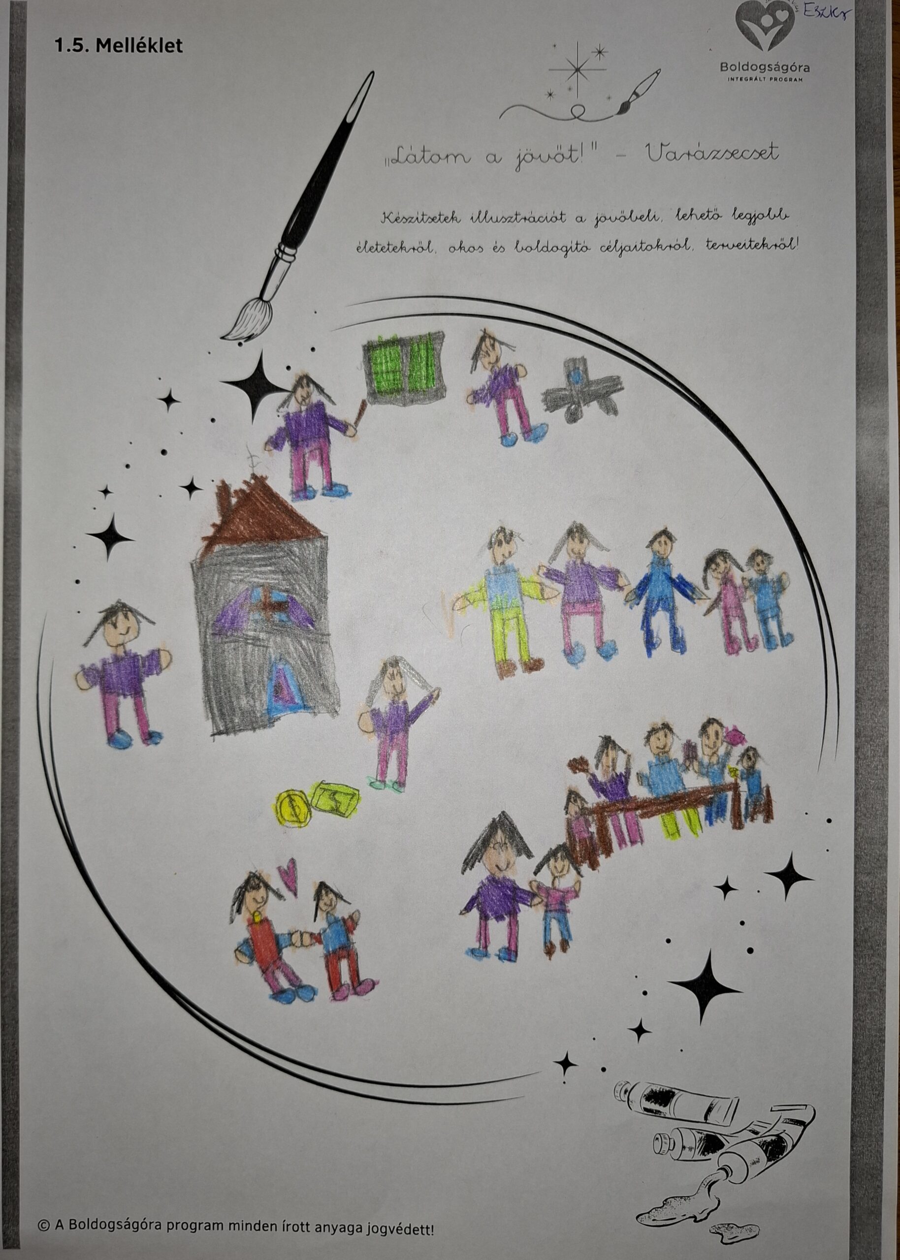 Varázsecset mese elvarázsolt minket. Bátran fogtunk bele a „Látom a jövőt „rajzok elkészítésébe. Hogy a munka jobban menjen és mindenre képesek legyenek a gyerekek, egy-egy varázsceruzát is kaptak álmaik megvalósításához.