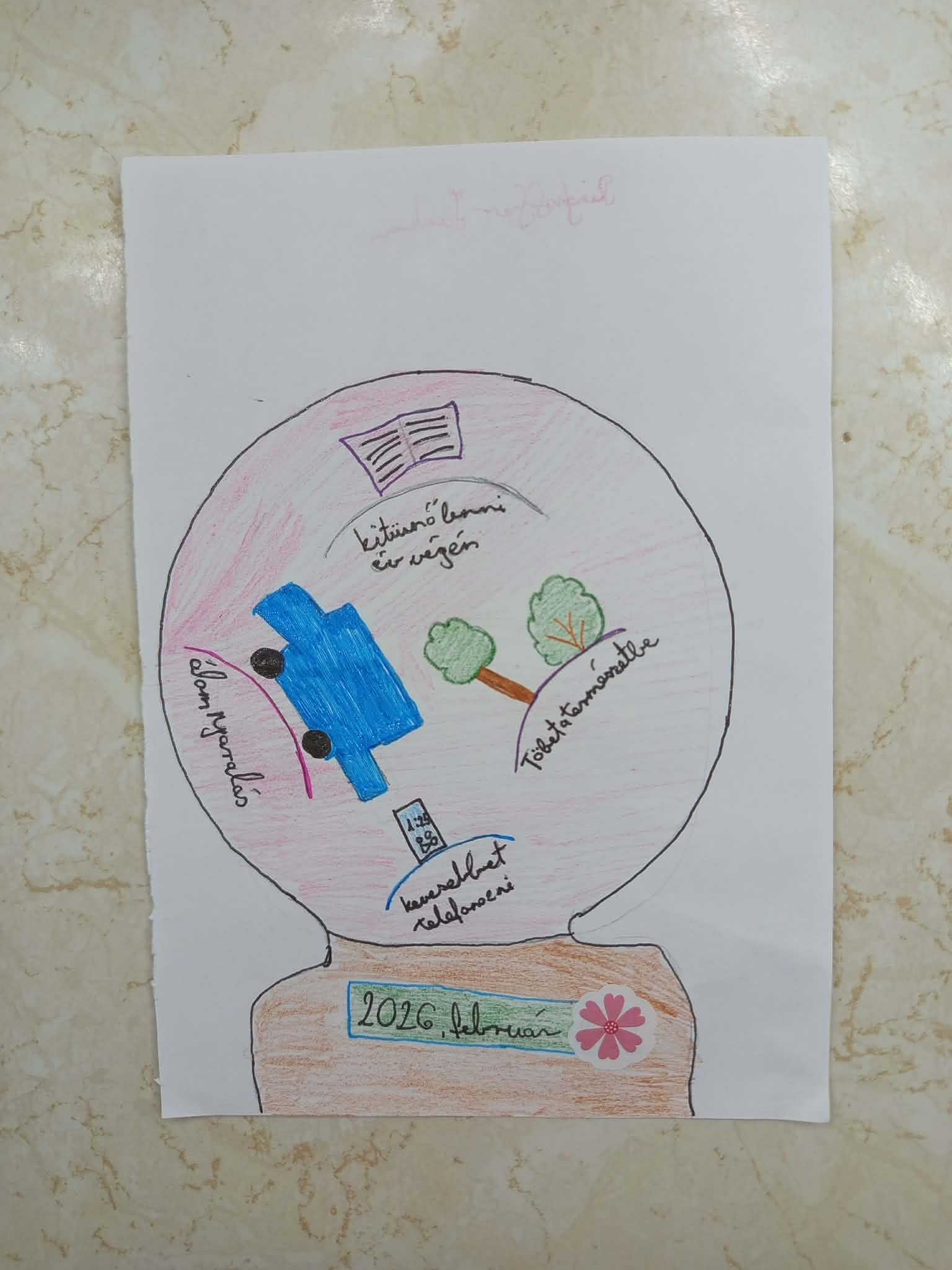 A gyerekek egy képzeletbeli varázsgömbbe néztek és lerajzolták ill. leírták jövőbeli céljaikat.