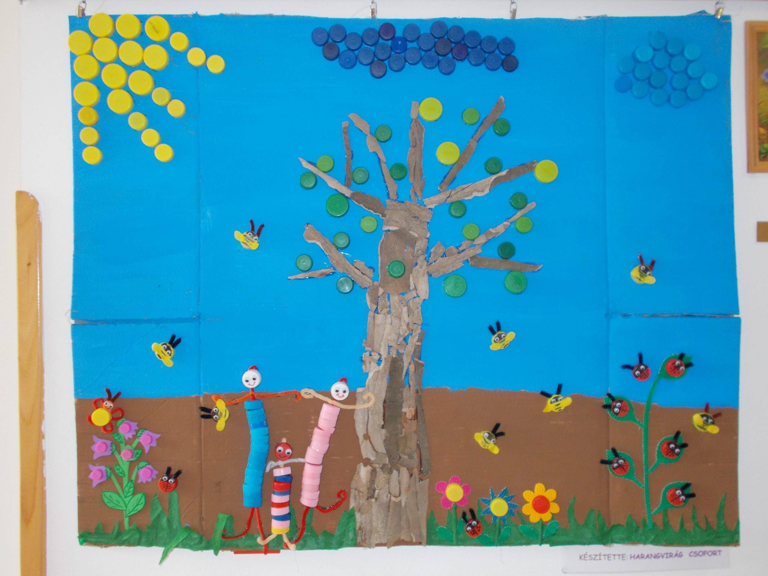 A Föld napját mi is megünnepeltük április 22. Meghallgattuk Bagdi Bella: Gyújts egy gyertyát a Földért dalát. Föld napi vetélkedőn vettek részt a gyermekek, ültettünk virágokat az óvoda udvarán. Az újrahasznosítást szem előtt tartva kollektív képet készítettünk a Föld napjára, kupakokból. A gyermekek aktívan kivették a részüket a gyűjtőmunkákban. Jó volt együtt dolgozni a közös képen. Az elkészült alkotásunkat az óvoda folyosójára helyeztük el.