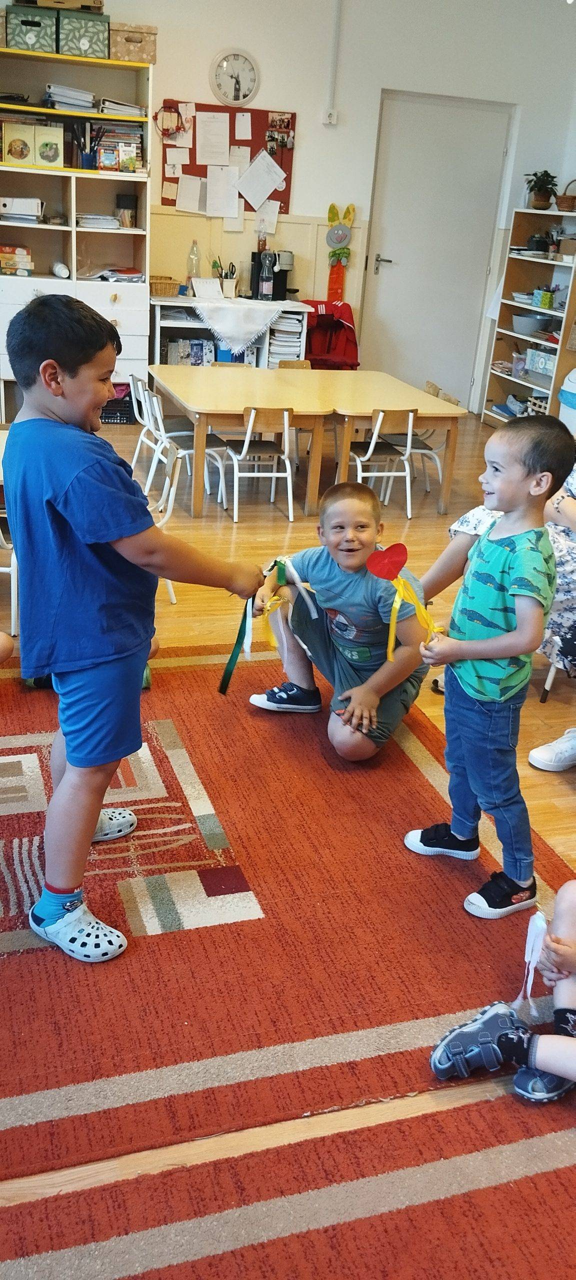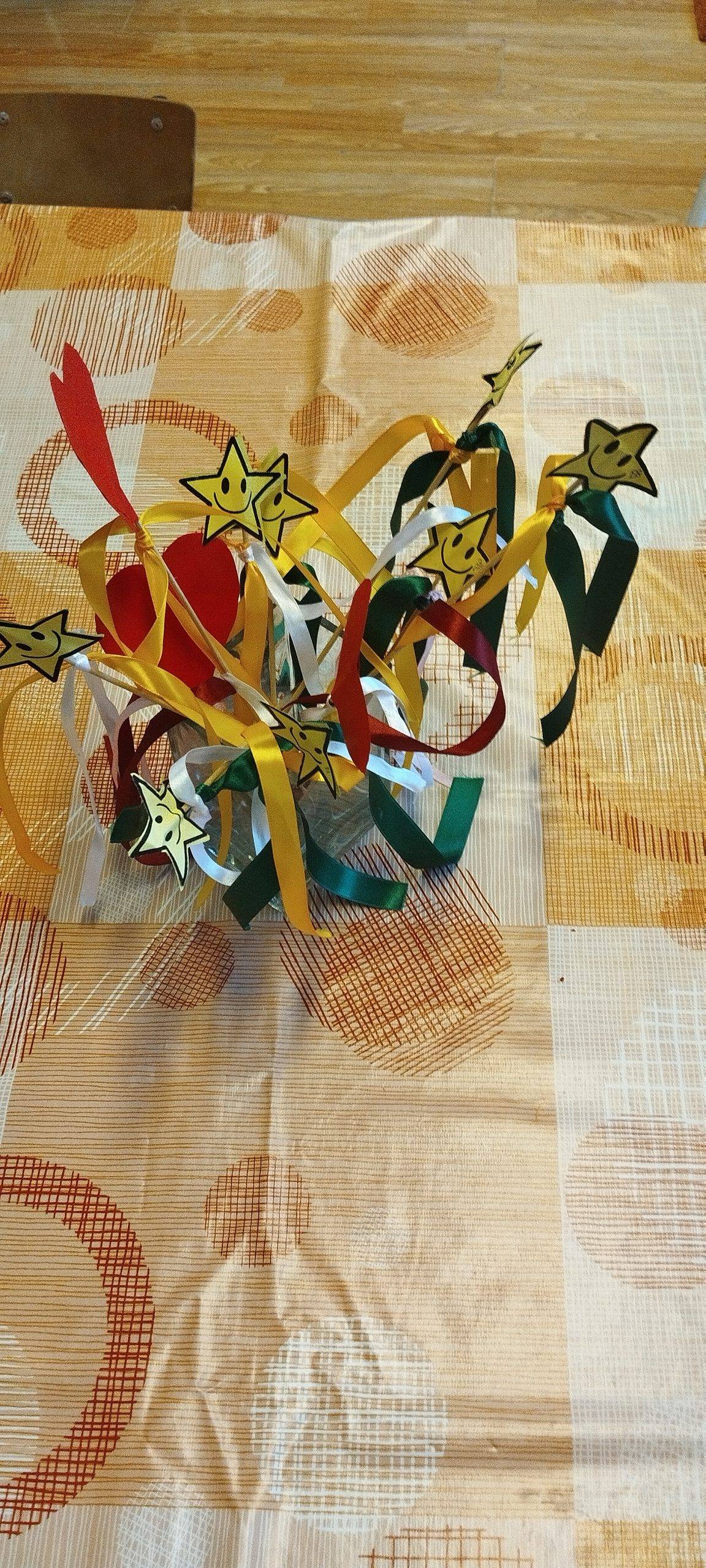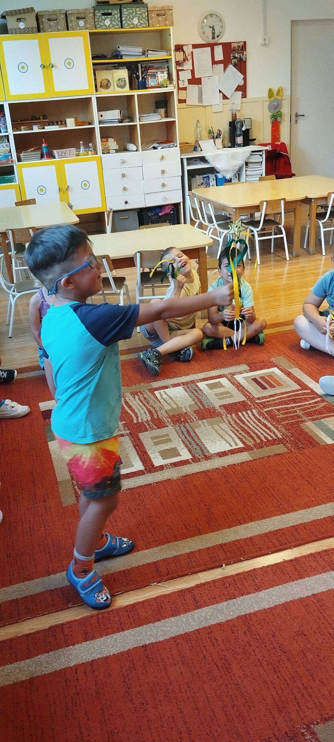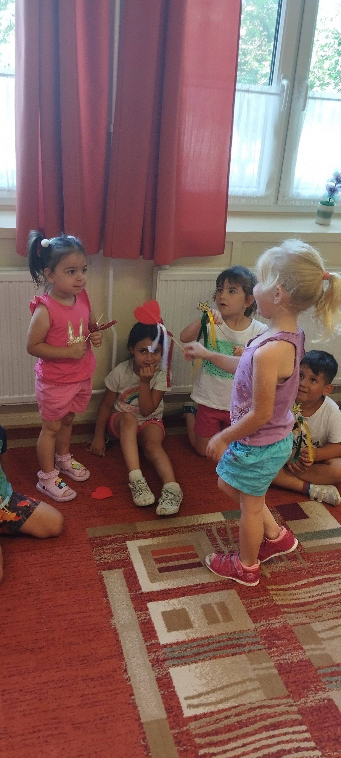 A fenntartható boldogság témakörhöz kapcsolódóan a gyerekekkel varázspálcát készítettünk, amelyet a csoportban megtalálható alapanyagokból készítettünk el. Majd egy varázslatos zene meghallgatása után ők is varázsolhattak. Pl.: egy varázsige elmondása után varázsolhattak valamit, amit szeretnének, ha megvalósulna. Volt olyan, aki azt varázsolta, hogy legyen pénzük, néhányan játékokat varázsoltak maguknak.