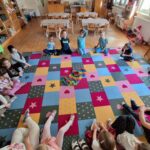 Relaxációs gyakorlattal kezdtük a foglalkozást-nagyon kedvelik és ismerik ezeket a gyakorlatokat, hiszen a mindennapjaink részei. Csoportunkban a Boldogságórák rendszeres „vendégek”. Belopakodnak a különböző tevékenységeinkbe-torna, matematika, séta, udvari játék, ábrázolás, verselés, dalolás.