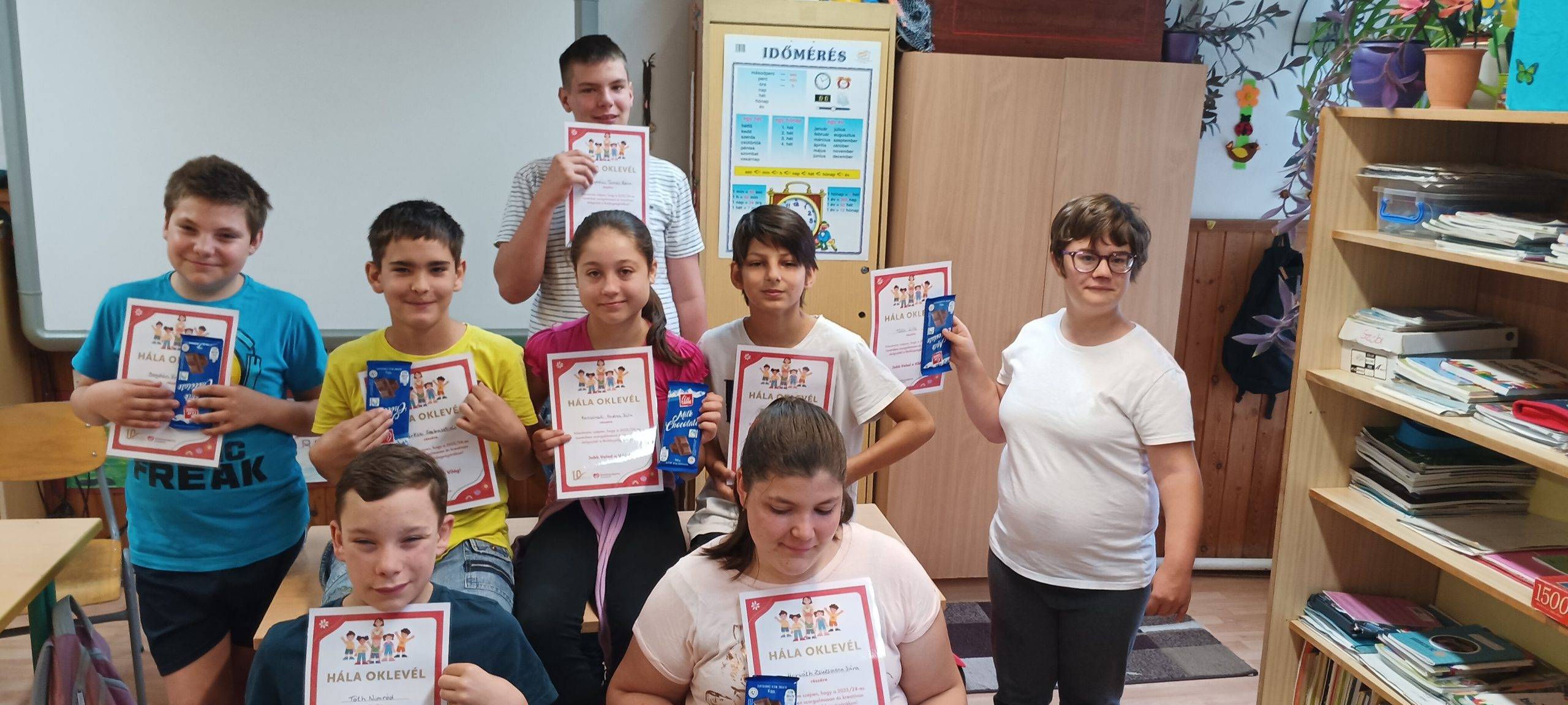 A 2023/2024-es tanévet lezártuk. Az 5. évfolyam ismét élményekben, feladatokban, új ismertekben gazdag évet tudhat maga mögött. Rengeteg tanulás és versenyre készülés mellett a gyakorlás, a barátszerzés, a közösségépítés volt a fő cél. Sok tanórán használtuk a boldogság órán tanultakat, a digitális eszközöket, és a gyakorlati feladatokat. Minden tanuló a lehető legtöbbet hozta ki magából. Ebben a hónapban rendszereztük a tanévben tanult ismereteket, értékeltük az egész éves munkánkat. Rengeteg élményben volt részünk. Köszönjük, hogy a program részesei lehetünk.