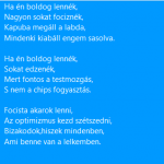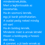 A gyerekek közös verset készítettek a kötelező szavak felhasználásával. Nagyon élvezték a feladatot, tulajdonképpen azt fogalmazták meg ,amitől valójában boldogok, vagy, ha valaki nem az, mit is tegyen érte! Idézet a versből: „A szeretet, a jó kedv ennek az egésznek a nyitja”
