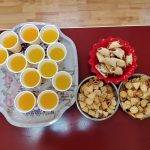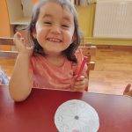 Az így kiszínezett kerék képezi a Boldogság virágunk közepét, melyet a gyerekek egy színes virágformára ragasztottak, melyen ez állt: Boldogság virágom így gondozom. Eztán következett a lakoma. Falalatozással zártuk le a boldogság órás tanévet.