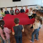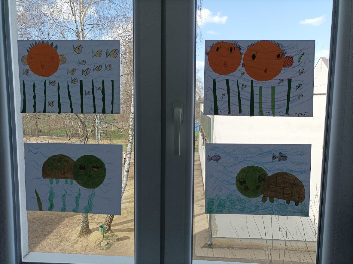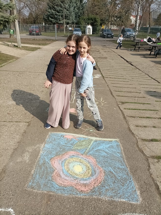 A boldogságórák során arra törekedtünk, hogy a gyerekek megtapasztalják, milyen fontos egymásra figyelni, meglátni a jót a másikban. Az iskola udvarát, annak is az aszfaltos részét krétarajzokkal színesítettük, virágtáncot jártunk.