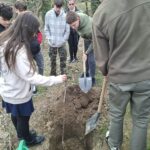 Iskolánk tanulói és dolgozói is részt vettek a programon, melyet az iskolakertben tartottunk meg. A 7. osztályos tanulók, Életrevalók7, végezték el a két gyümölcsfa elültetését. Egy meggy és egy kajszibarack fát szereztünk be erre a napra. Az ültetés ideje alatt 10+1 tudnivalót szedtünk össze a gyerekekkel, hogy miért érdemes fát ültetnünk. Beszélgettünk a fotoszintézisről, a talaj védelméről, arról, hogy sok növény- és állatfajnak adnak otthont a fák, illetve, hogy javítják az emberek mentális és fizikai egészségi állapotát is. Végül az előre elkészített hurkapálcára ragasztott papírvirágokat, méhecskéket szúrták le a fák tövébe a tanulók.
