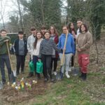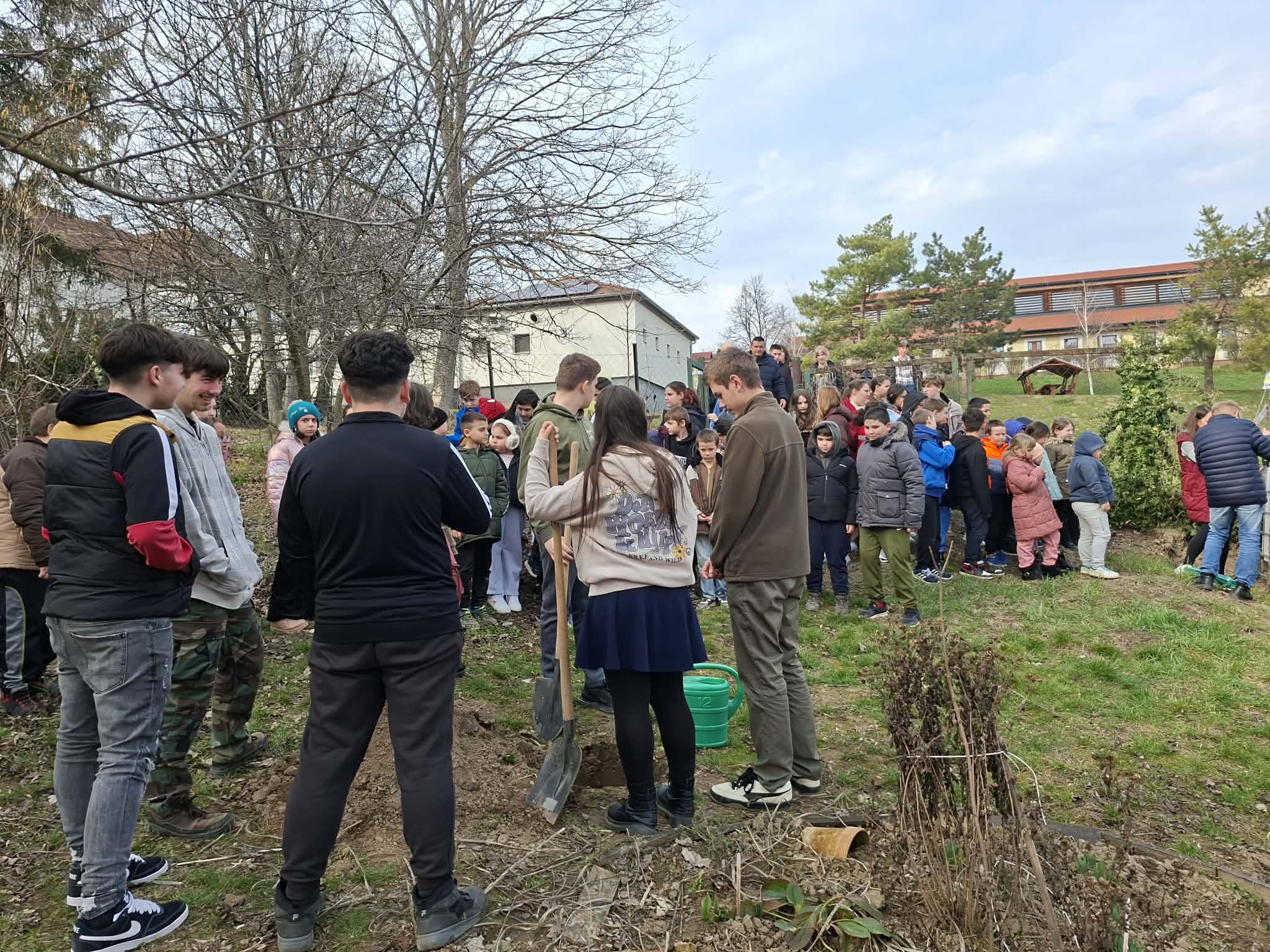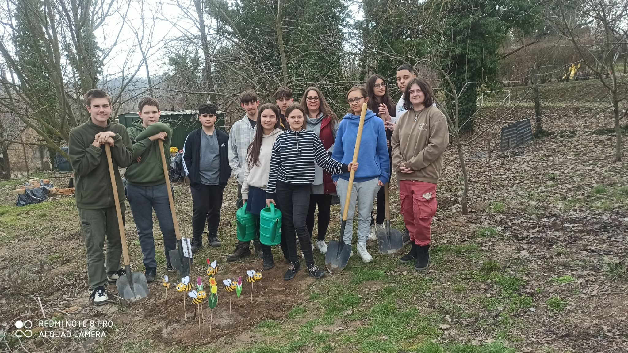 Iskolánk tanulói és dolgozói is részt vettek a programon, melyet az iskolakertben tartottunk meg. A 7. osztályos tanulók, Életrevalók7, végezték el a két gyümölcsfa elültetését. Egy meggy és egy kajszibarack fát szereztünk be erre a napra. Az ültetés ideje alatt 10+1 tudnivalót szedtünk össze a gyerekekkel, hogy miért érdemes fát ültetnünk. Beszélgettünk a fotoszintézisről, a talaj védelméről, arról, hogy sok növény- és állatfajnak adnak otthont a fák, illetve, hogy javítják az emberek mentális és fizikai egészségi állapotát is. Végül az előre elkészített hurkapálcára ragasztott papírvirágokat, méhecskéket szúrták le a fák tövébe a tanulók.