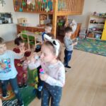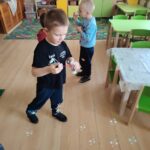 A hét során horgászós játékot is játszottunk, melynek során pomponokat kellett különböző csipeszekkel „kihalászniuk” a vízből. Ez a tevékenység szintén hozzájárult a finommotorika fejlődéséhez. A foglalkozást buborékfújással tettük még élvezetesebbé, melynek segítségével a száj körüli izmokat is erősítettük.