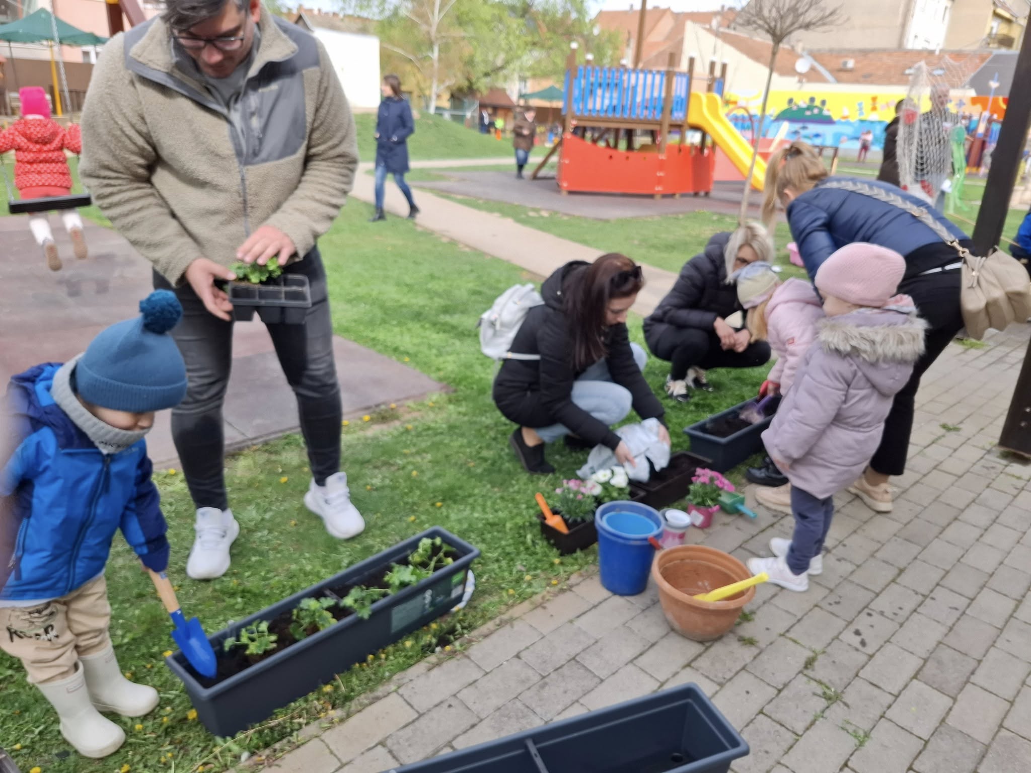 Fontosnak tartjuk, hogy már kisgyerekként megismertessük, hogy miért fontos a környezetünket védeni, a természetet és az állatvilágot óvni. Az előkészületek során virágmagokat ültettünk és folyamatosan gondoztuk. A fenntarthatósági témahetünk megkoronázásaként a szülőkkel közösen vehettünk részt a Zöldítő napon, ahol a különböző állomások teljesítése után az óvodánk udvarát növények ültetésével tettük szebbé.