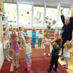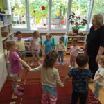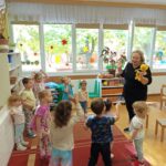 A havi ajánlásból két részletben dolgoztuk fel a témát, az alapkönyvből elolvastam a gyerekeknek a Tódi törpe szemüvegét, meg is beszéltük, hogy miért is jó nekünk ha optimistán tekintünk a világba. Az Erősség programból a legkisebbekkel dolgoztuk fel a kitartás, szorgalom témáját, ehhez Dóri egy vendéget hozott nekünk, Zümit, a szorgalmas méhecskét. Zümi bemutatkozott a gyerekeknek, majd elmesélte, hogy ő, és a családja hogyan készíti a mézet, mit kell tenniük ahhoz, hogy majd mi is tudjunk mézes kenyeret enni, vagy torokfájás esetén mézes teát inni. A kicsik élvezték, hogy bemutatkozhatnak, vannak élményeik, ismereteik a méhecskével, mézzel kapcsolatosan. Megtanultuk Zümivel a kitartás erősségmondókát is, majd eljátszottuk az „Aki” játékot. Természetesen minden kisgyermekünk majdnem minden feladatra igent mondott, és szorgalmas, szeret rajzolni… azonban nagyon örömteli volt, hogy a biciklizés feladatnál egy kicsink nem feküdt le, és biciklizett a lábával, mert ő felvállalta, hogy még nem tud biciklizni. A játékelpakolás kérdésénél is voltak bizonytalan gyerekek. Nagyon tetszett nekik a téma, ők még csak most ismerkednek Boldog Dórival, és az egész Boldogságórával.