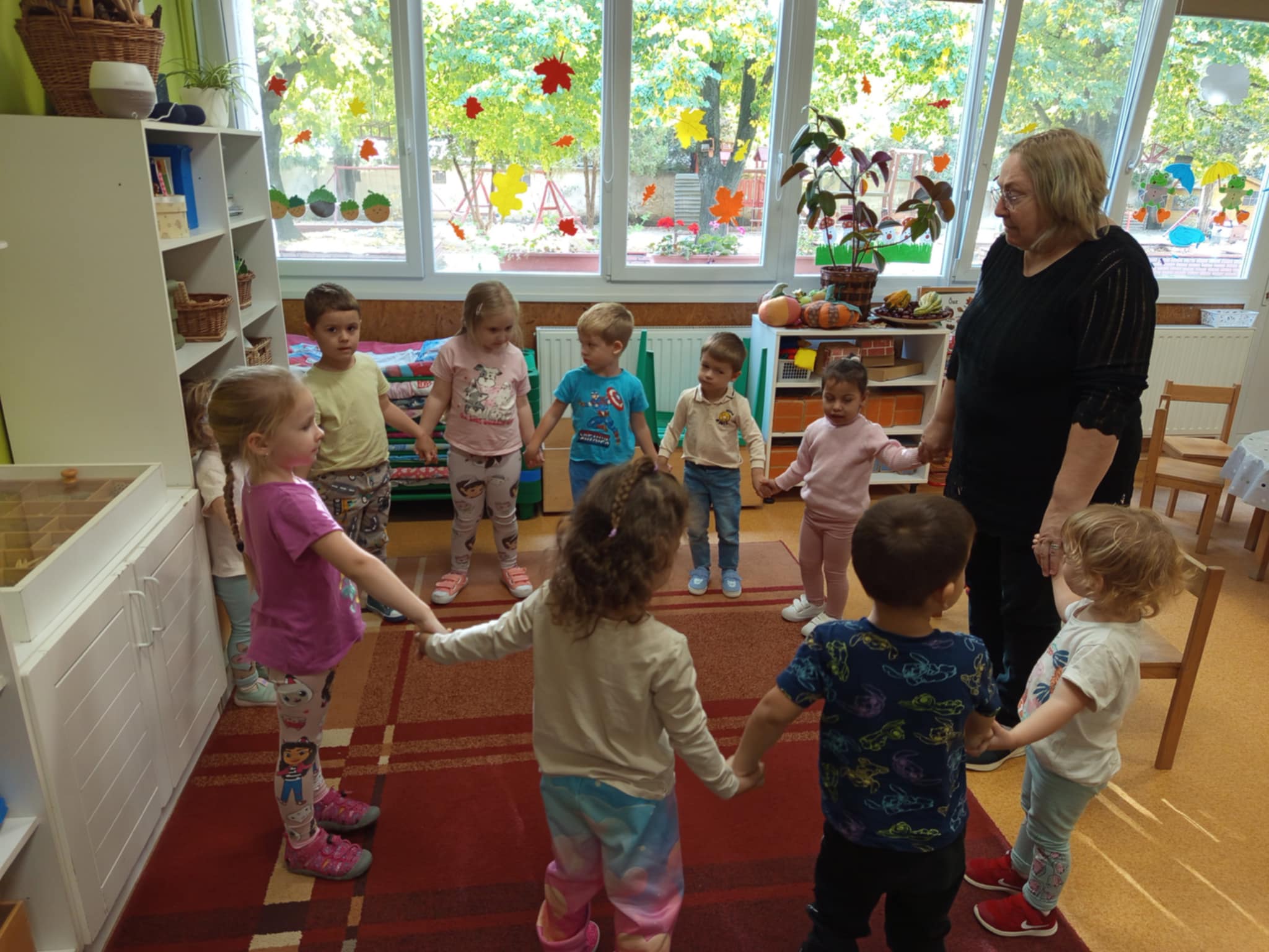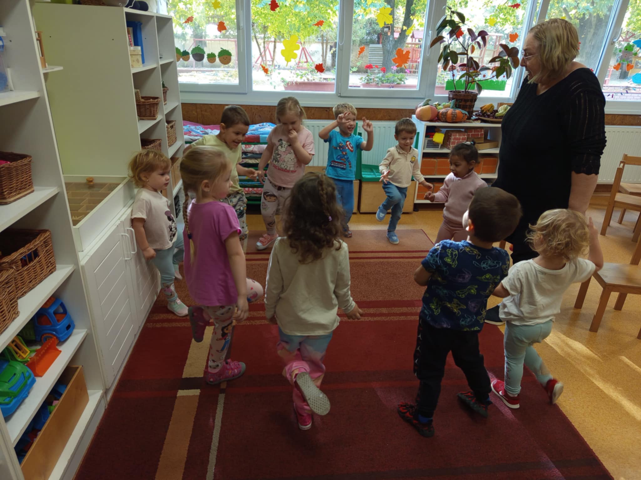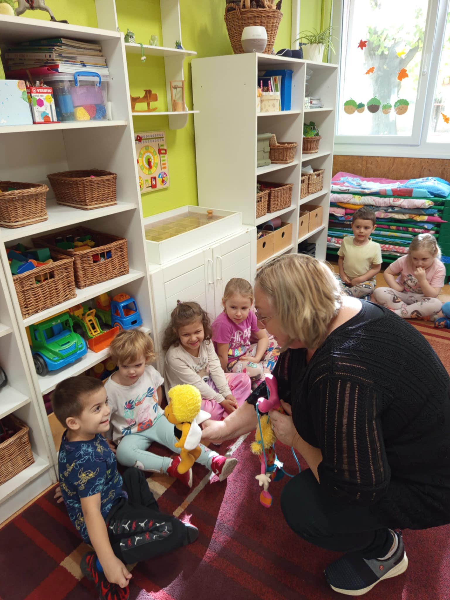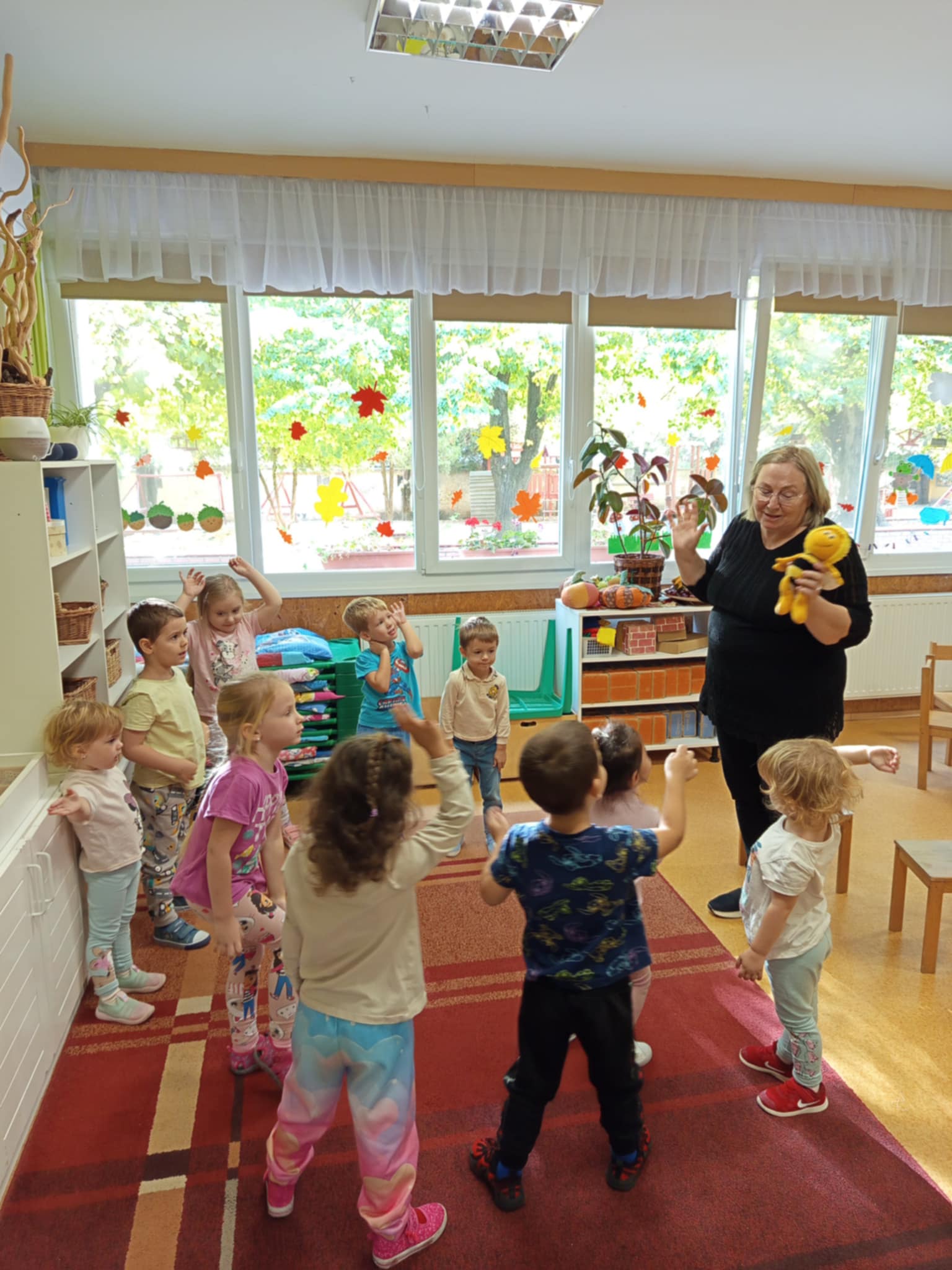 A havi ajánlásból két részletben dolgoztuk fel a témát, az alapkönyvből elolvastam a gyerekeknek a Tódi törpe szemüvegét, meg is beszéltük, hogy miért is jó nekünk ha optimistán tekintünk a világba. Az Erősség programból a legkisebbekkel dolgoztuk fel a kitartás, szorgalom témáját, ehhez Dóri egy vendéget hozott nekünk, Zümit, a szorgalmas méhecskét. Zümi bemutatkozott a gyerekeknek, majd elmesélte, hogy ő, és a családja hogyan készíti a mézet, mit kell tenniük ahhoz, hogy majd mi is tudjunk mézes kenyeret enni, vagy torokfájás esetén mézes teát inni. A kicsik élvezték, hogy bemutatkozhatnak, vannak élményeik, ismereteik a méhecskével, mézzel kapcsolatosan. Megtanultuk Zümivel a kitartás erősségmondókát is, majd eljátszottuk az „Aki” játékot. Természetesen minden kisgyermekünk majdnem minden feladatra igent mondott, és szorgalmas, szeret rajzolni… azonban nagyon örömteli volt, hogy a biciklizés feladatnál egy kicsink nem feküdt le, és biciklizett a lábával, mert ő felvállalta, hogy még nem tud biciklizni. A játékelpakolás kérdésénél is voltak bizonytalan gyerekek. Nagyon tetszett nekik a téma, ők még csak most ismerkednek Boldog Dórival, és az egész Boldogságórával.