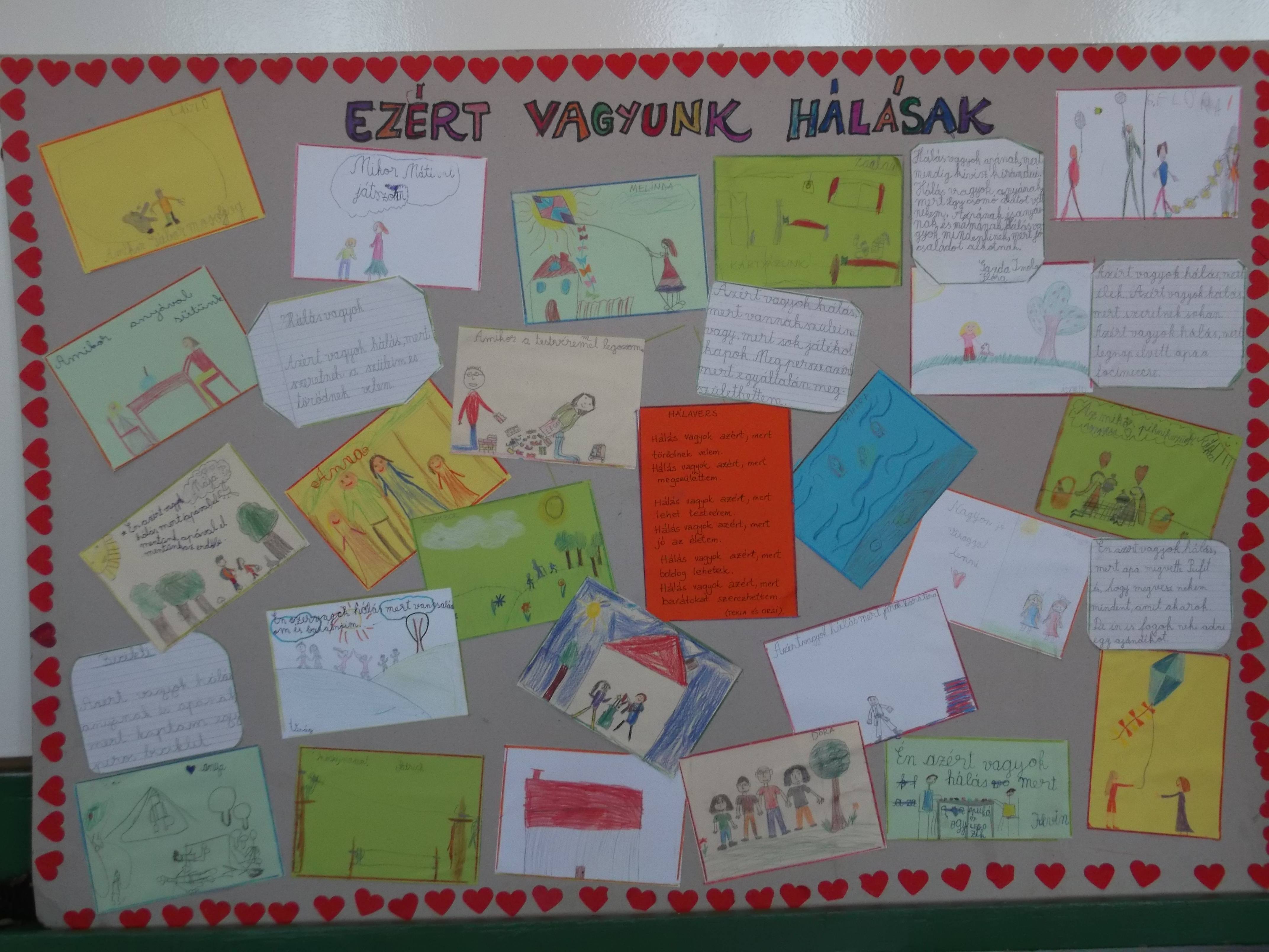 A mosolygós csillagok csapata ma megpróbálta megérteni a hála fogalmát és közösen megneveztük azokat a személyeket, akiknek hálával tartozunk.Hálásak vagyunk nagyszüleinknek, barátainknak, testvéreinknek, szüleinknek, nevelőinknek és tanárainknak is, akik nagyon sokat tettek értünk.Köszönjük a Jóistennek, hogy élhetünk és itt lehetünk ! Mindezeket egy hála tabló formájában gyűjtöttük össze 🙂 Hálás köszönet azért, hogy itt lehetünk !
