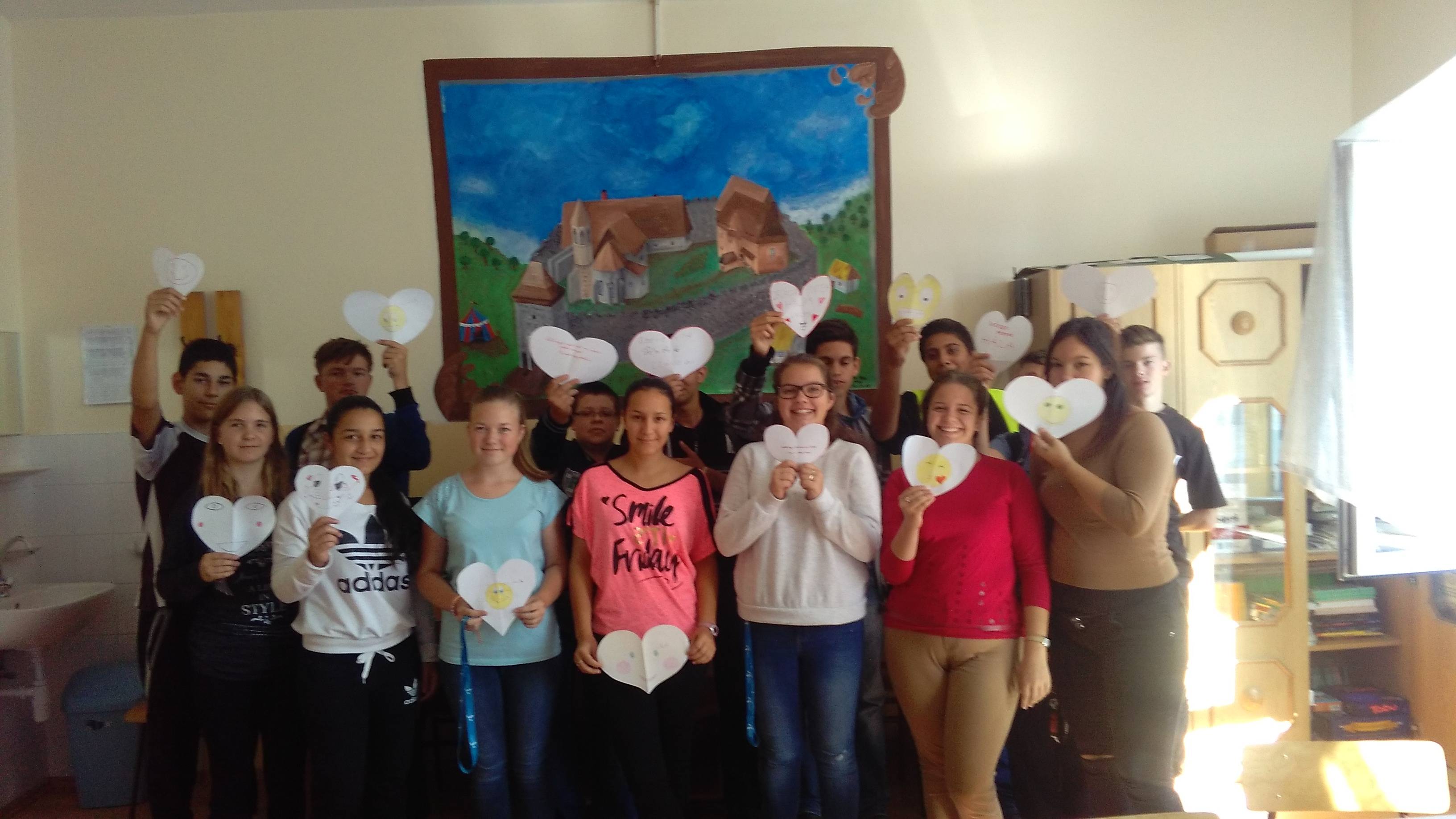 Romániában , Kovászna megye egy kis falujában, Dálnokon is megtörtént… Megtartottuk az első boldogságórát. Az első osztályosok hála- pókhálót szőttek egymás közt, majd hazavittek egy-egy virágszirmot, melynek segítségével elmondták valakinek a családból, hogy miért hálásak. Másnap a visszahozott szirmokból kialakult a Hála- virágunk. Bukdácsolunk, de törekszünk lebontani a falakat, tanuljuk az örömet.