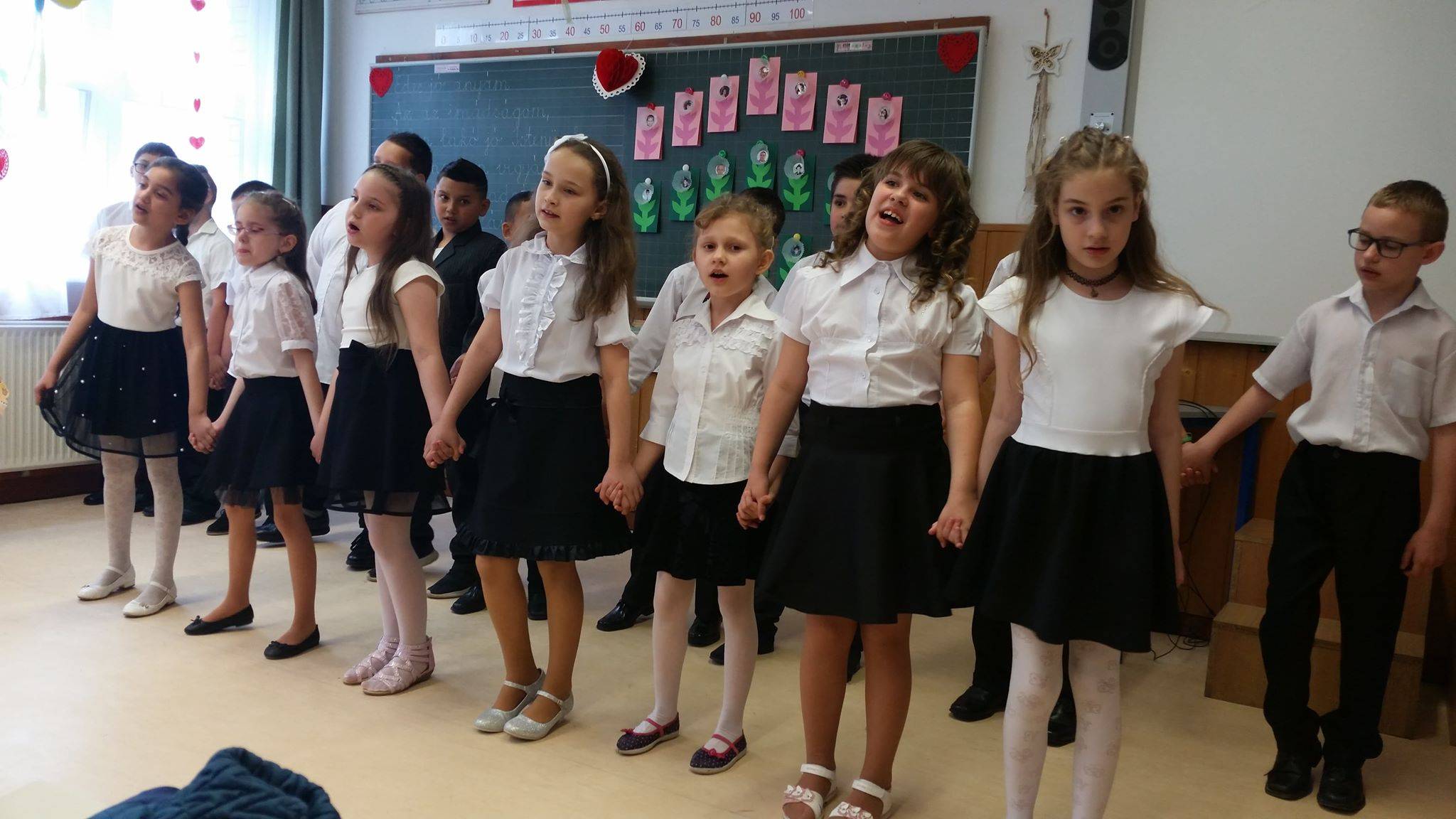 Az osztályom minden tagja nagyon szeret mozogni akár szünetben az udvaron vagy testnevelés órán. De nem csak az ilyenféle mozgást szeretik, hanem nagyon szeretnek táncolni is, hisz ez is mozgás. Az anyák napi ünnepségünkön táncos mozgással fejeztük be az édesanyák köszöntését.