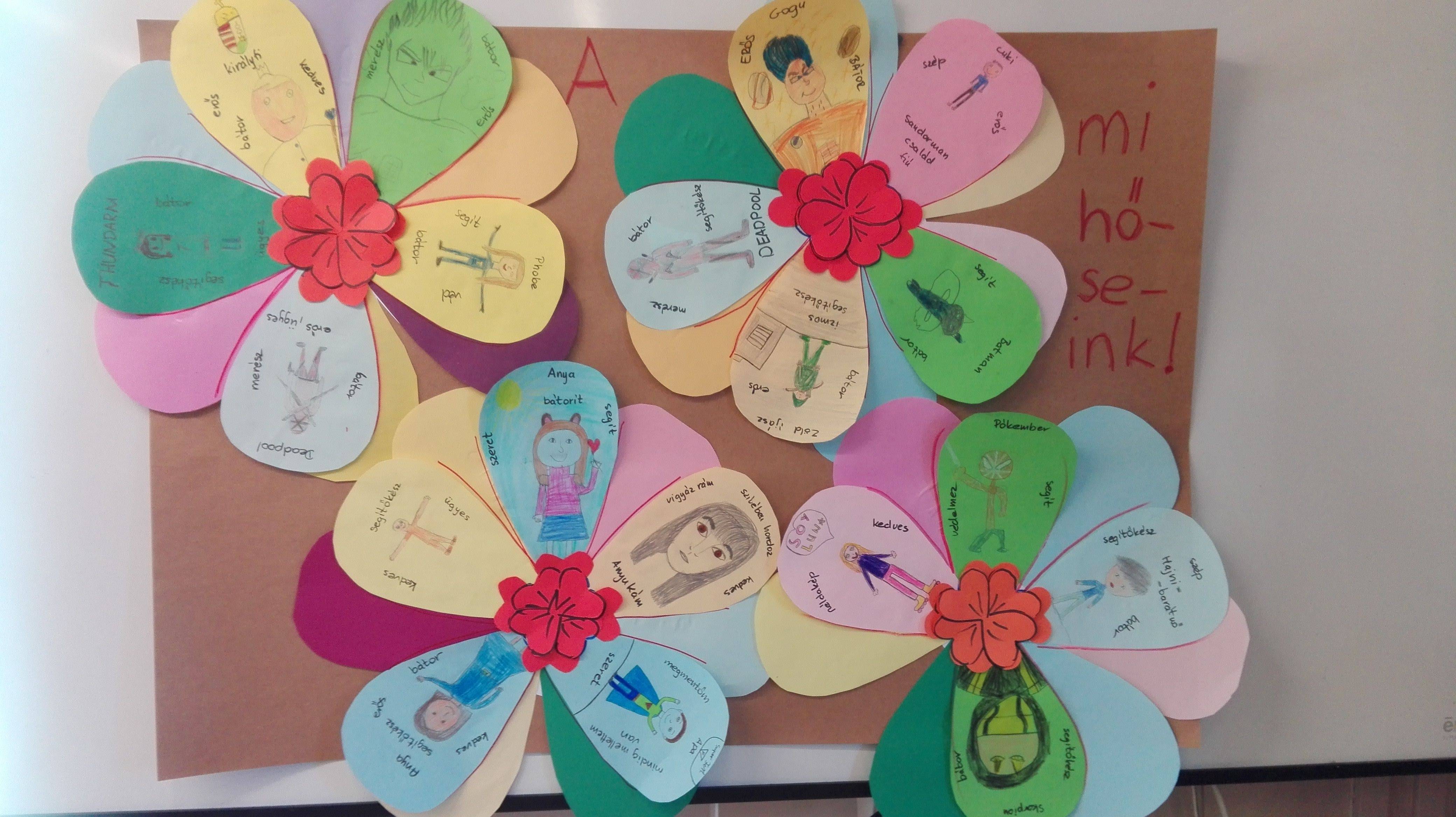 Egy harmadikos kisdiáknak nagyon nehéz szembenézni a kudarcokkal, nehézségekkel. Többször is beszélgettünk arról, hogy mi okoz nekik problémát napról napra. Ezután személyes emlékemen keresztül beszéltem el, hogy melyek a megküzdés lépései, hogyan tudnak ők is szembenézni a problémákkal. Ezután olyan embereket kerestünk először a népmesékben, majd a kedvenc rajzfilmekben, filmekben, akik olyan tulajdonsággal rendelkeznek, amelyek segíthetnek nekünk. Végül elkészültek a virágszirmokra a hősök és tulajdonságaik.