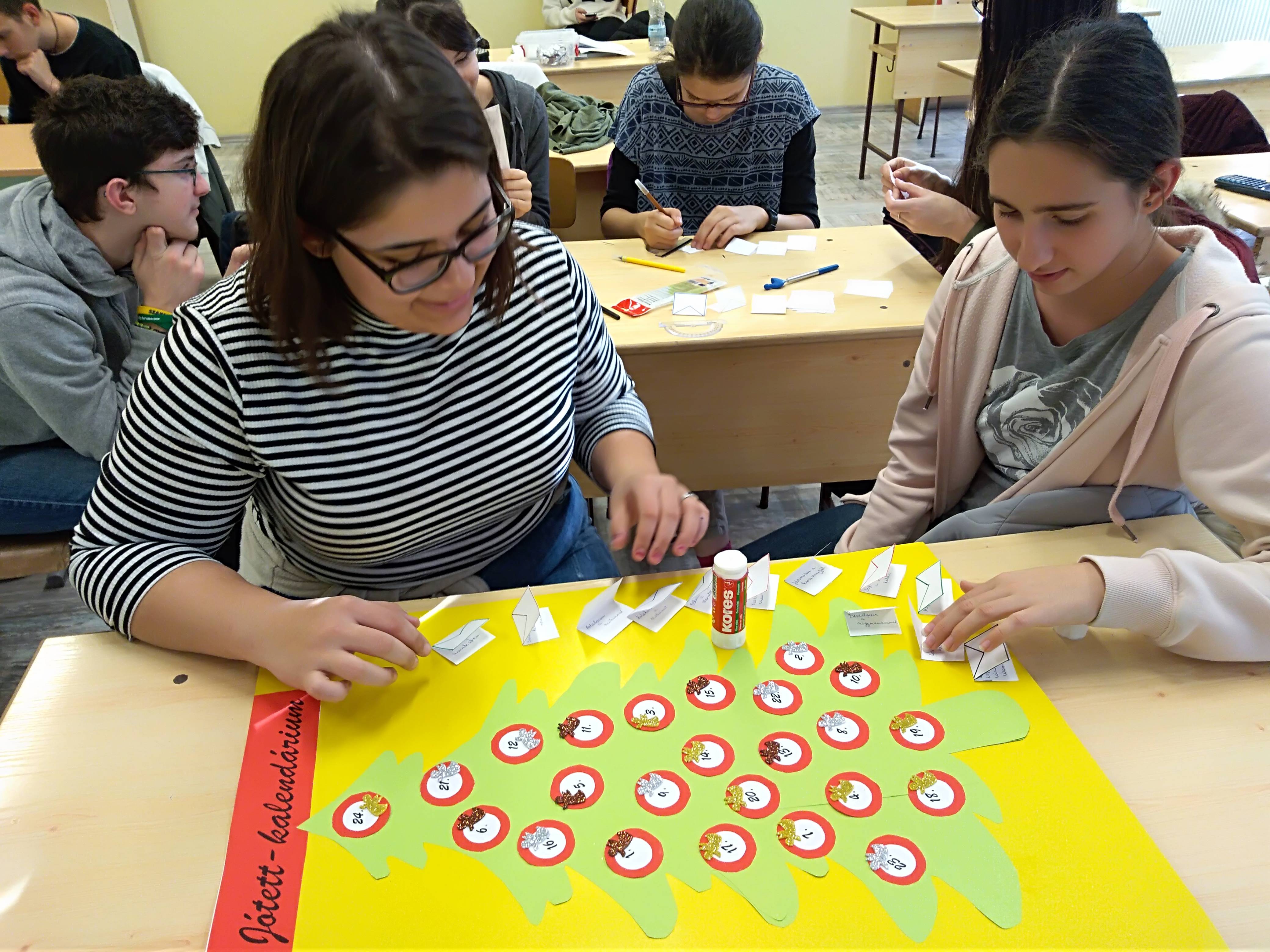 Két előkészítő foglalkozást, beszélgetést követően a Dési Huber István Általános Iskola 8.a osztályában is elkészült a Jótett-kalendárium. A jó cselekedetek sora is „útjára indult”: 24 örömteli pillanatra, momentumra készültünk…. De az angyalkák szorgosak, így több lesz, jóval több!