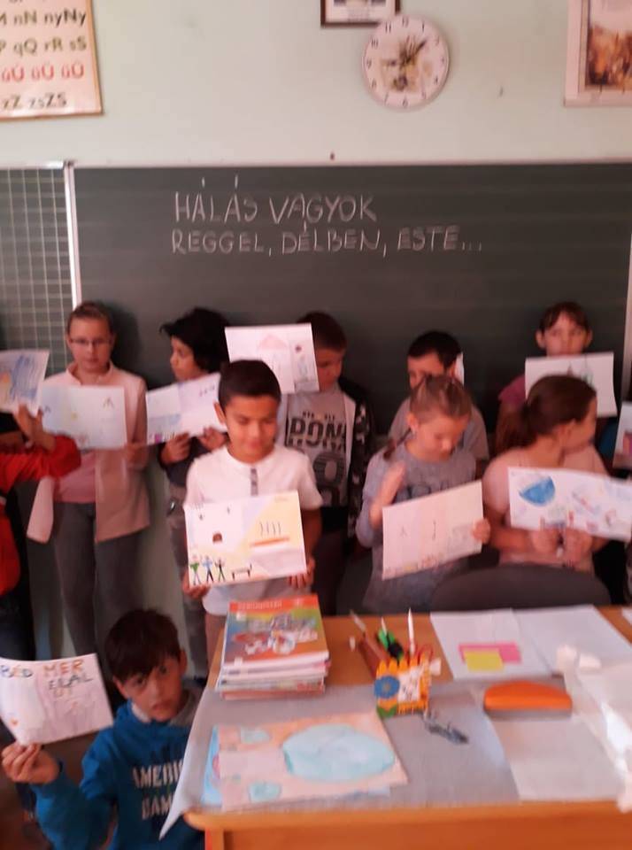 Első osztályosokként, a rajz lehetőségét választottuk. A gyerekek nagyon élvezték, hogy saját élményeiket oszthatták meg társaikkal, amelyeket szívesen vetettek utána papírra. Kimeríthetetlen beszélgetés vette kezdetét az első ilyen boldogságórán:) Mielőtt elkészült volna a tabló, mindenki elmesélte társainak, hogy mit (miket) rajzolt le, miért lehet ő igazán hálás. Voltak nagyon megható kis történetek…