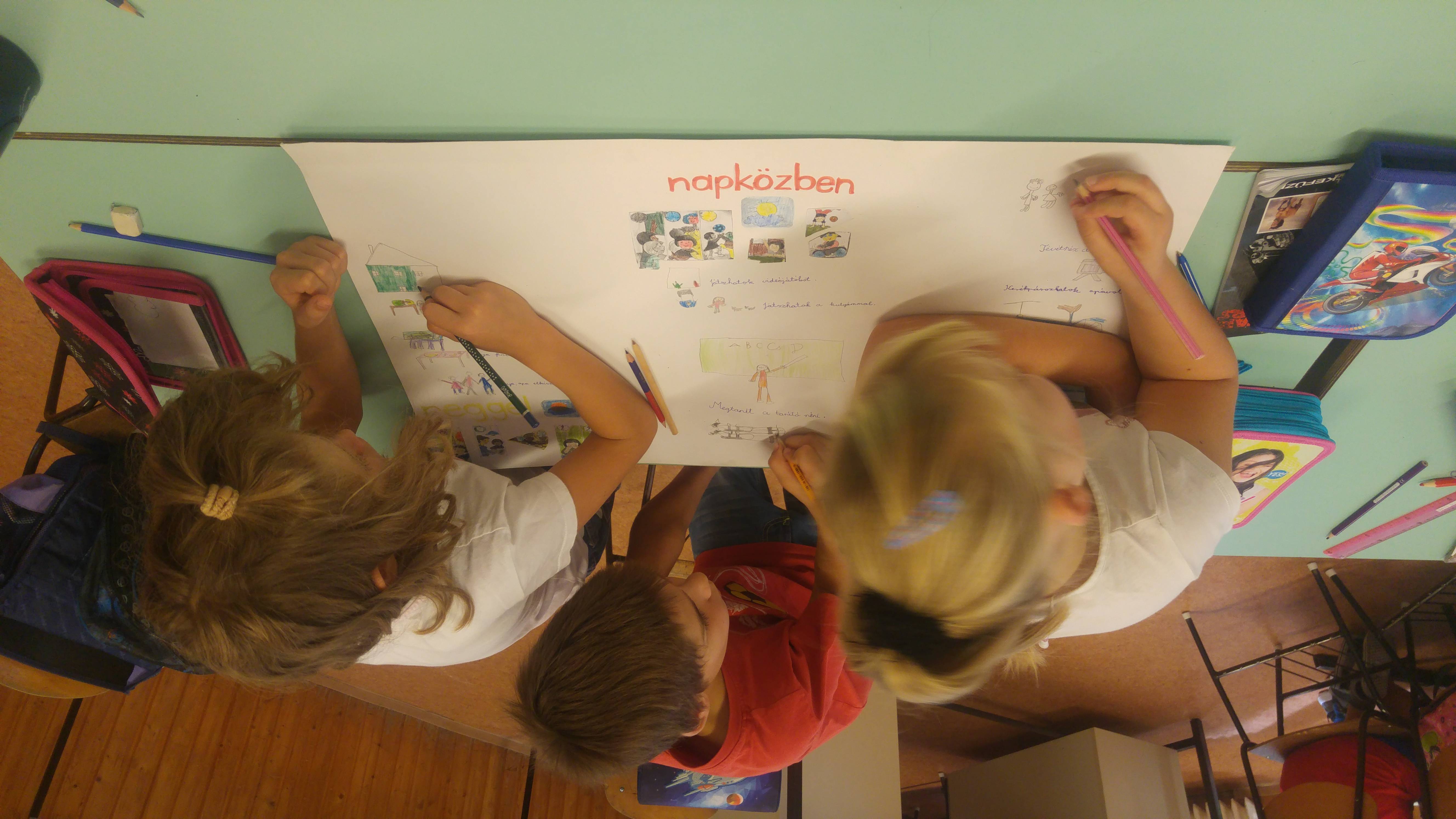 Miután megbeszéltük, hogy mit jelent a hála valójában, és milyen hatással van a lelkünkre, testünkre, közösen összegyűjtöttük, hogy az átlagos hétköznapokban is számtalan olyan dolog történhet, amiért hálásak lehetünk. A diákjaim olyan dolgokért hálásak, mint a szüleik önzetlen szeretete, hogy minden nap tudnak tisztálkodni, minden nap friss étel várja őket otthon, hogy télen is meleg van nálunk, és ehhez hasonló szép és pozitív élmények. A gyűjtögetés után a „Hálacukrokat” osztottam ki, amit annak a személynek tudnak odaadni, akinek hálával tartoznak. Ez a személy lehet osztálytárs vagy családtag is. Végül csoportokban a gyerekek elkészítettek egy táblát, ahol összegezték az élményeiket a foglalkozás témáját tekintve, illetve hogy reggel, délben és este mik történhetnek, amikért hálásak lehetünk.