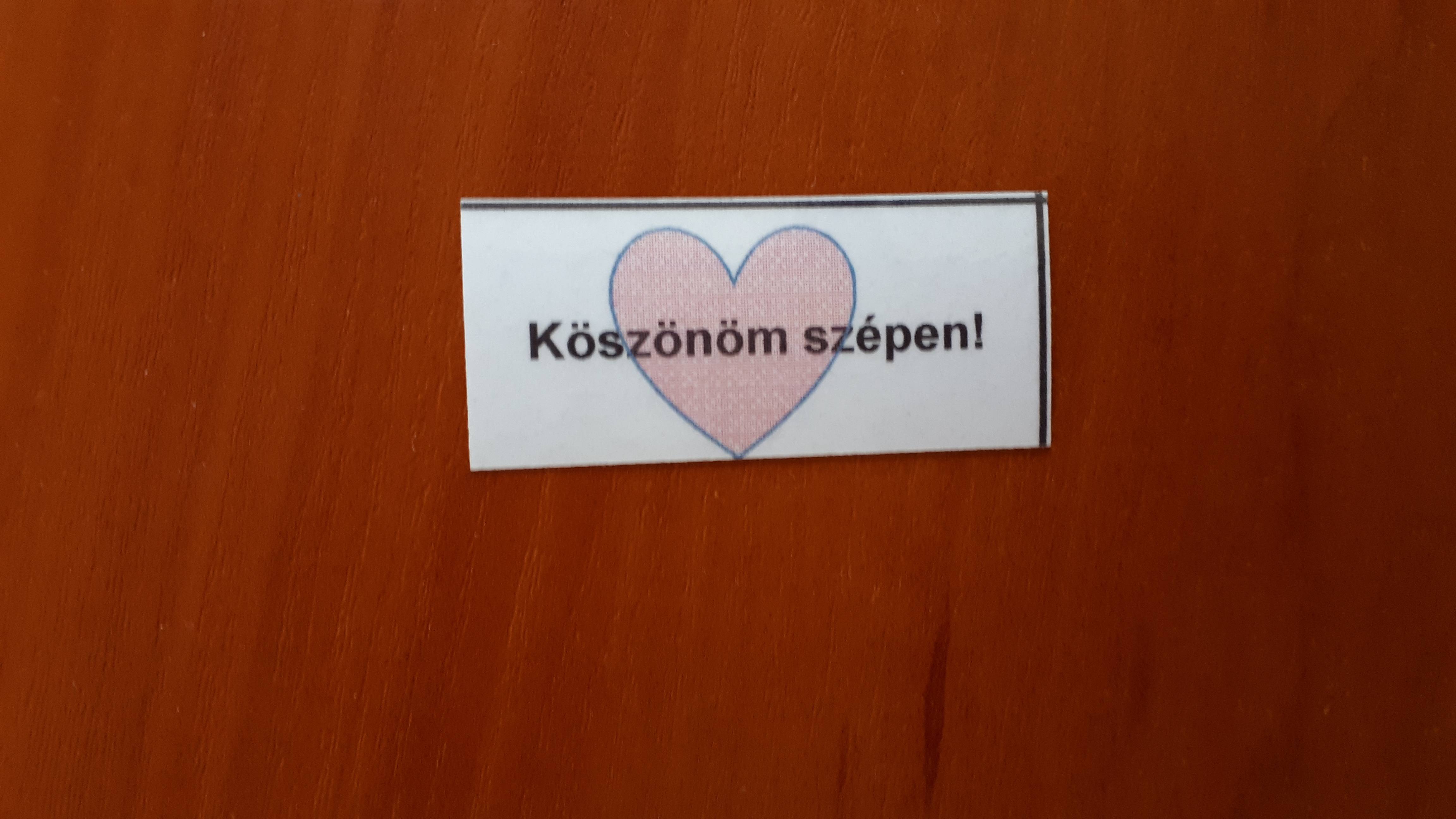 Mindenki kapott 3 kártyát, melyet otthon kellett elhelyezni titokban arra a helyre, amiért hálásak lehetnek. Így kerültek pl: uzsonnás dobozba, vasalt ruhák közé, reggeli mellé….
