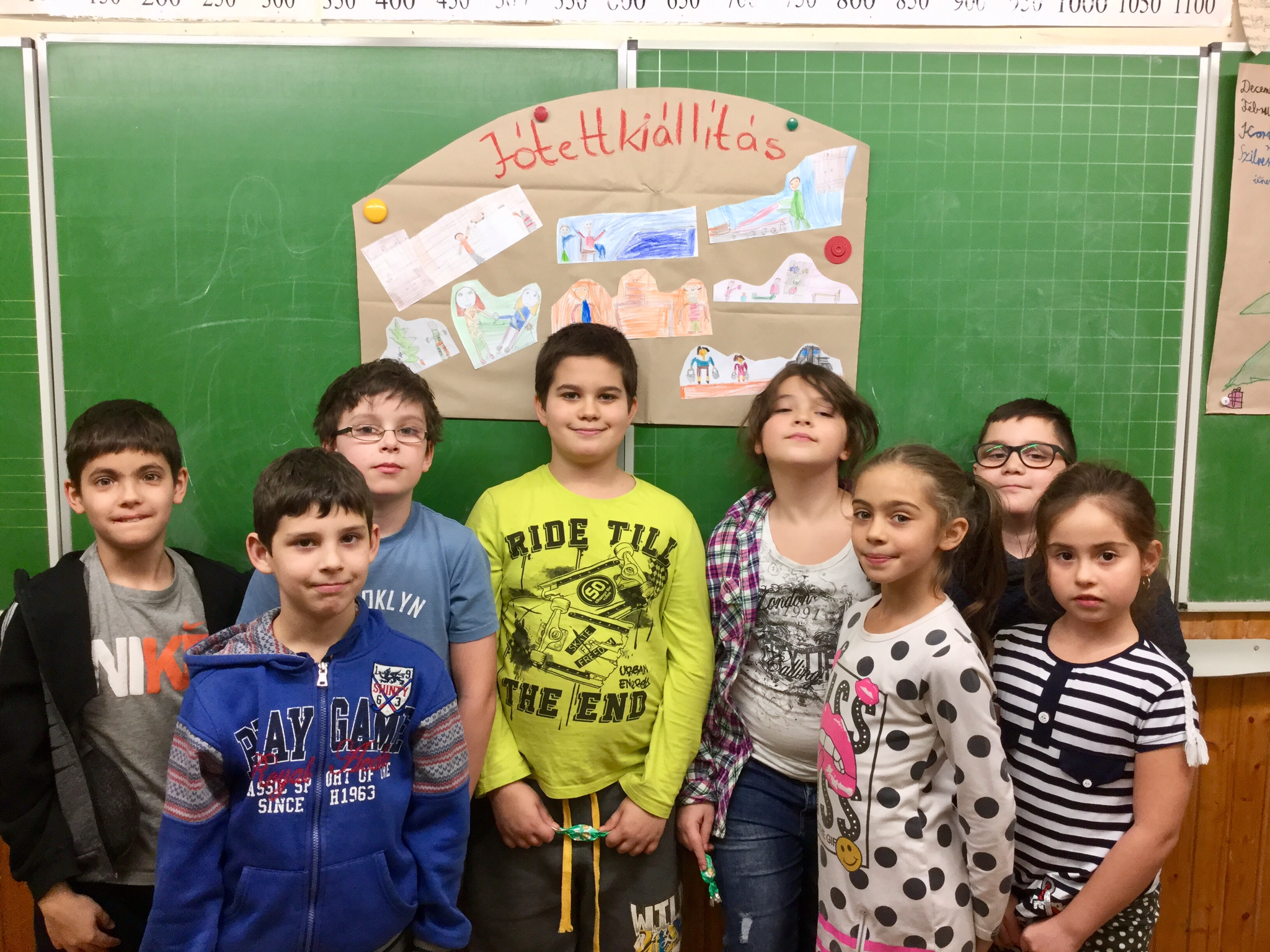 A boldogító jócselekedet téma keretében az osztályomban rajzokat készítettek a gyerekek. Rajzos formába öntötték, hogy kivel, milyen jót tettek. Sok élményük volt, pl. segített egy sérült kutyának, a tanítónéninek, a szüleinek takarítani, főzni. Mindenki mesélt egy jótettéről a többieknek.