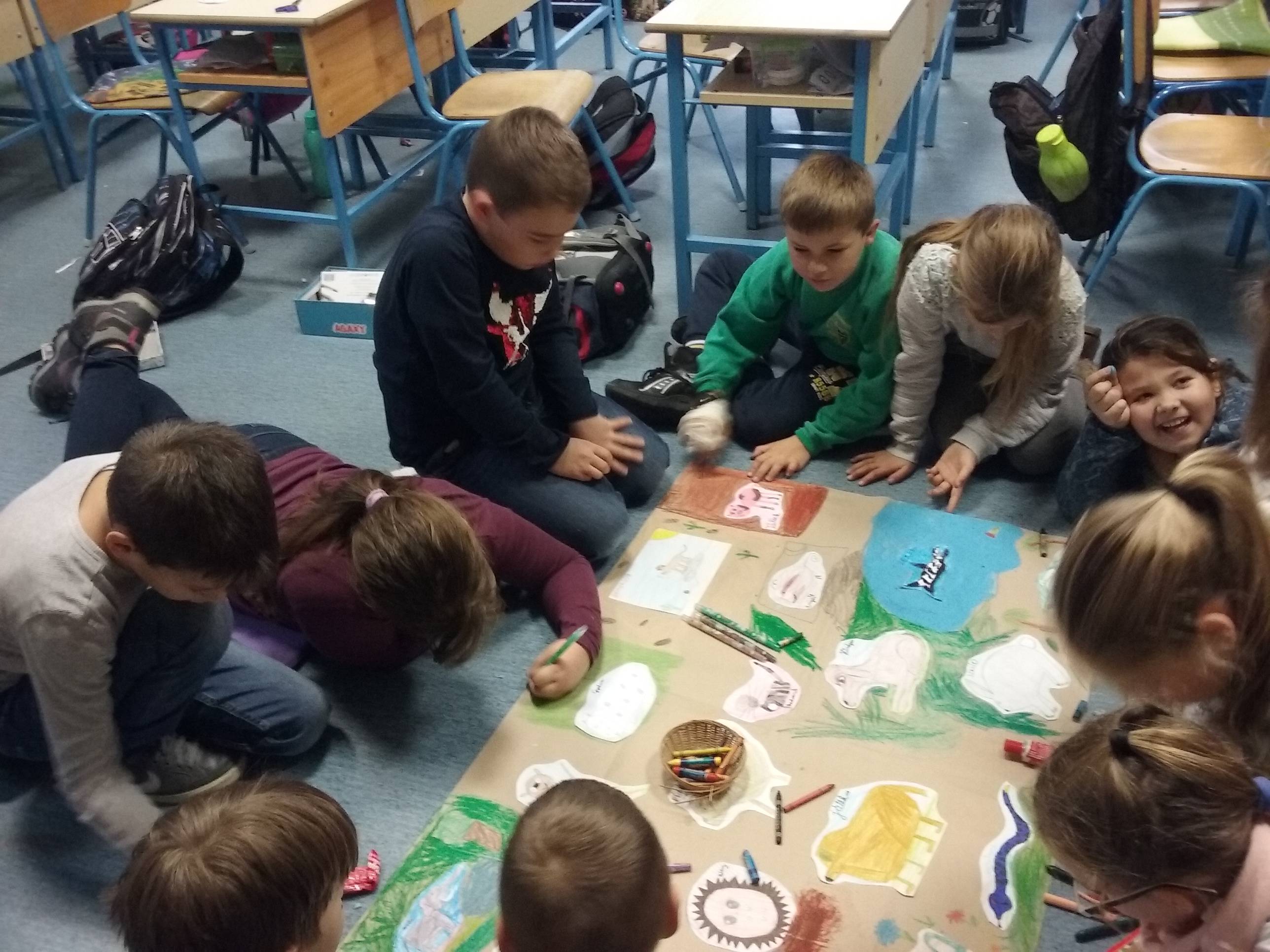 Ezután minden tanuló választott egy nyomtatott házikót, amelyet kedvére színezett és beleírta, hogy milyen hobbik, tulajdonságok szerint keresi a „szomszédait”. Az elkészült házikók felkerültek a terem falára.