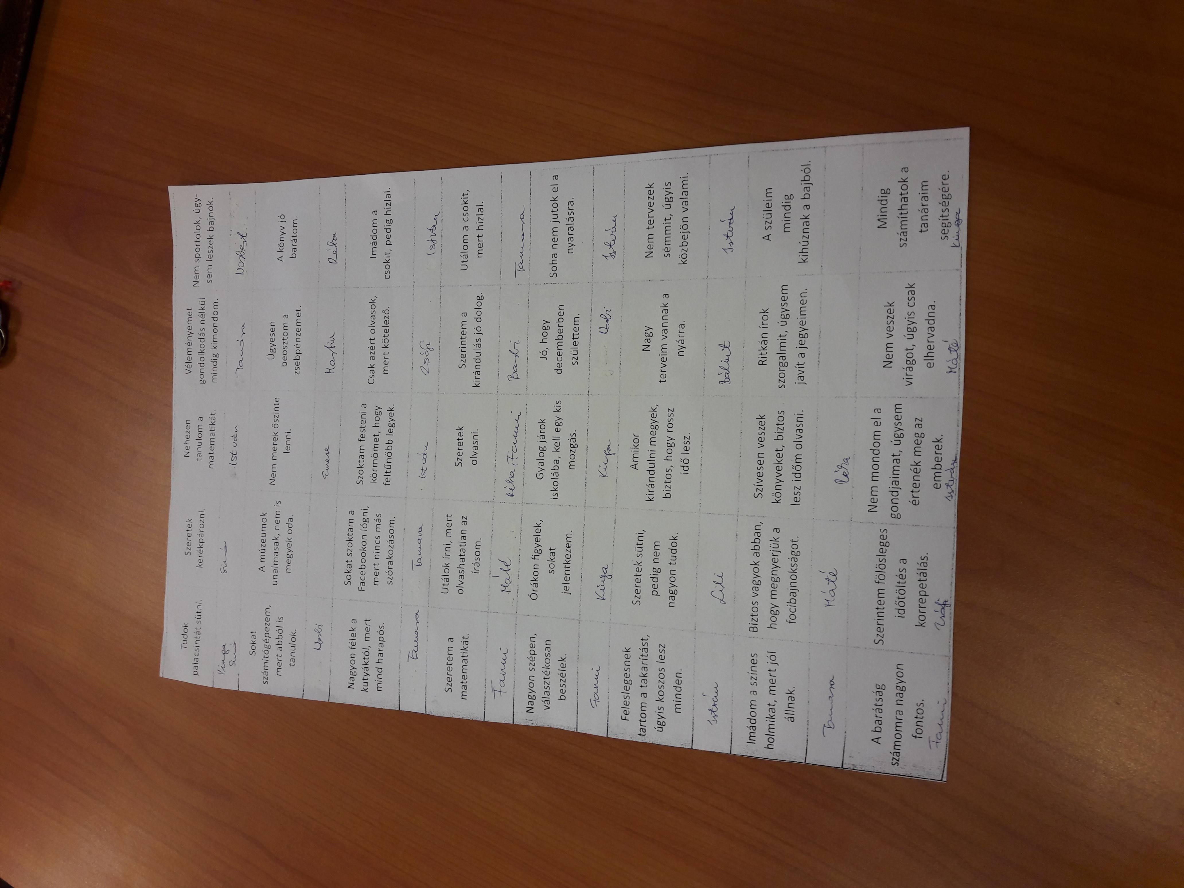 A feladatok közül azt választották, amely feltételezi, hogy jól ismerik egymást. Az osztály nagy része már 7. éve együtt van, ezért könnyen boldogultak a kérdések megválaszolásával.