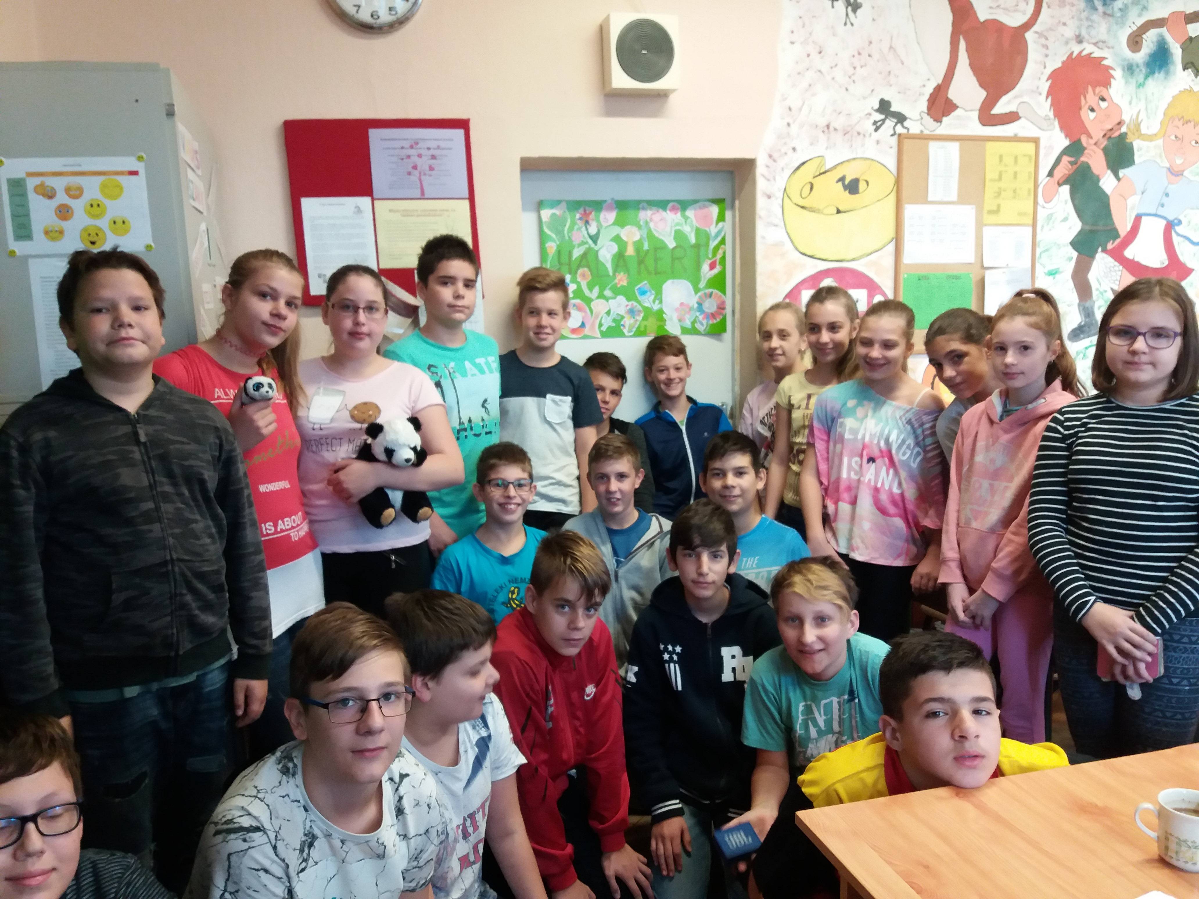 A hálakertet több órán készítettük el. Előszőr megbeszéltük, leírtuk ki miért hálás, majd rajzórán a kolléganőm segítségével a gyerekek elkészítették a hála virágait, fáit.