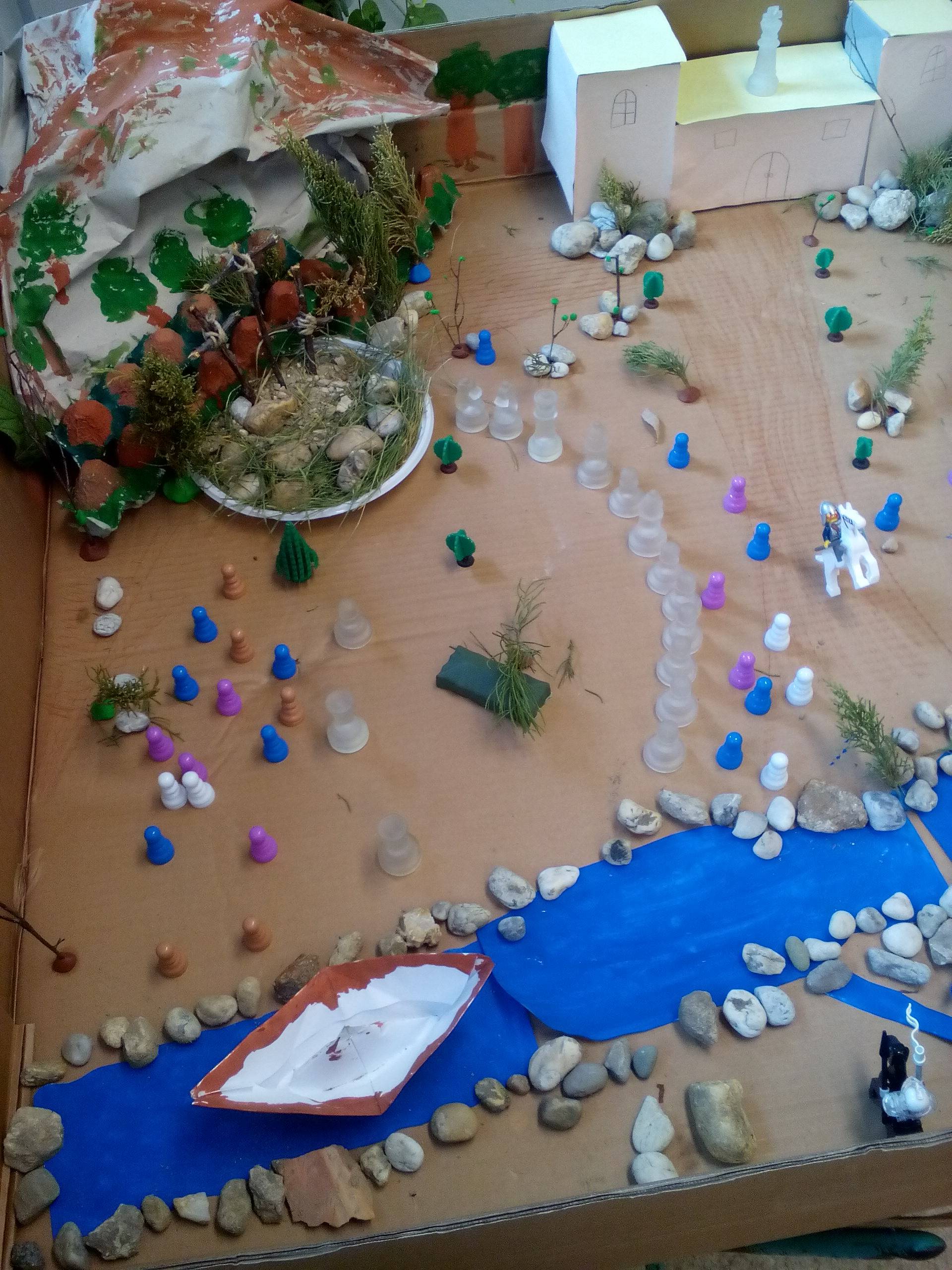 A diákok ebben a hónapban a Toldit tanulták. Így összekötöttük a magyaróra anyagát a boldogságóra havi témájával. Egy erdőben Toldi csatáját jelképeztük, s a háttérben egy erdőt készítettünk. Megbeszéltük kinek miért lehet és kell megbocsátani. A gyerekek nagyon élvezték a feladatot.