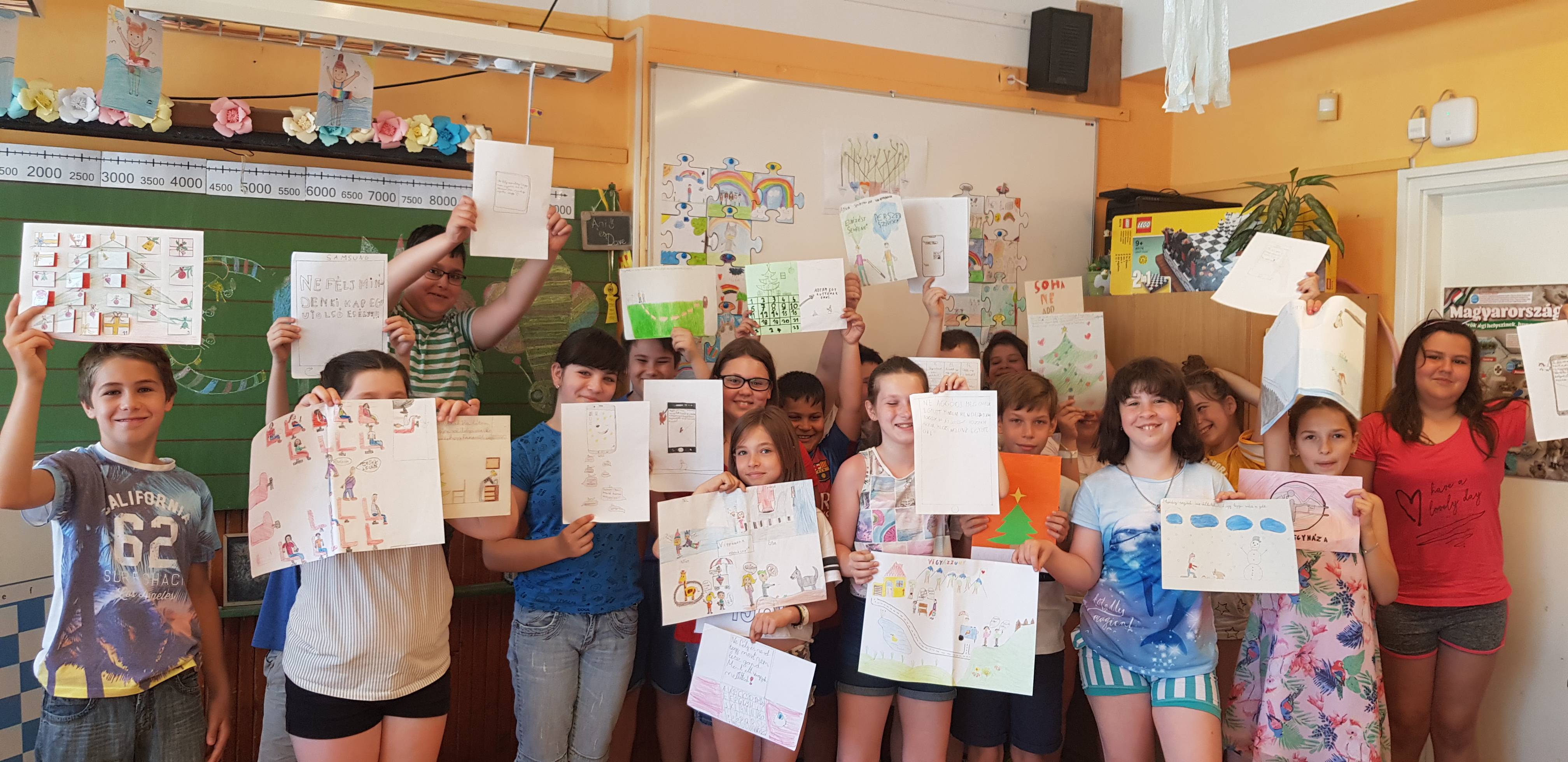 Az online tanulás alatt mi folytattuk közös boldogságforrásainkat. Az aszfaltrajzverseny jó móka volt, mert beleélhettük magunkat. Lehettünk lepkék, virágok, szárítókötélen lógó ruhadarabok, horgászok. Mindenki nyertese volt a játéknak. Boldog nap volt.