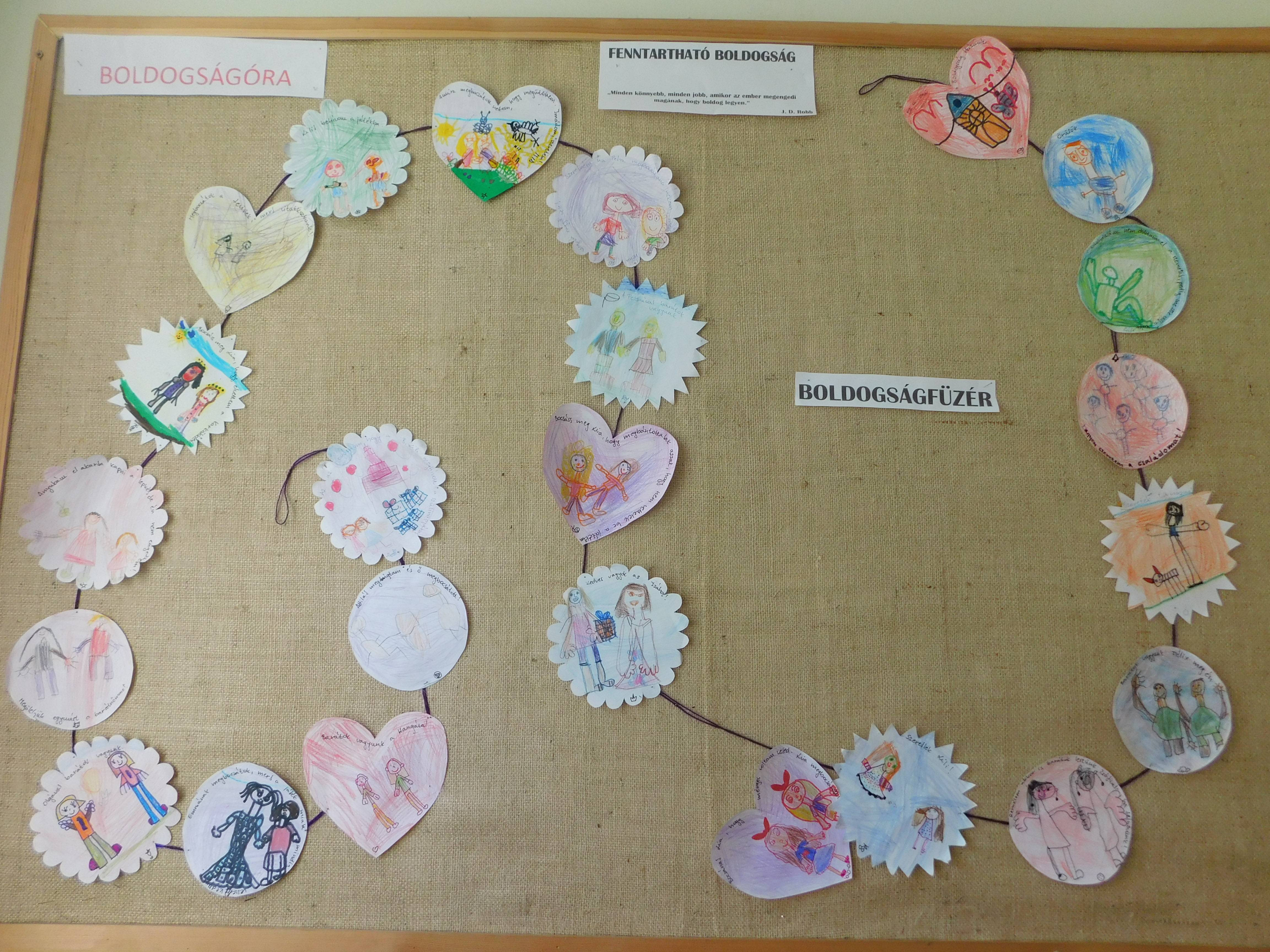 A boldogságprogram alkalmazásával sikerült elérni, hogy énképük, különböző tevékenységek során és kapcsolatokban differenciálódjék. Fontos volt számomra ezeket a foglalkozásokat megszervezni, amely a gyerekeknek biztonságot nyújt, lehetőséget a kibontakozáshoz, beszélgetőkörök aktív részvevője lehessen, sokszínű tevékenységet gyakorolhasson, érzelmi kötődéseik alakuljanak társaik, felnőttek iránt, a destruktív kritika minden formájától védve legyenek! Képessé váltak, hogy ezekben a közös tevékenységekben érdeklődéssel, aktivitással, jó kedvvel vegyenek részt. Társaik beszédére oda figyelnek, beszédfegyelmük, monotóniatűrésük kiemelkedően jó lett. Megértik környezetük jelenségeit, van véleményük, képesek azokat egyéb cselekedetükben újra alkotni.