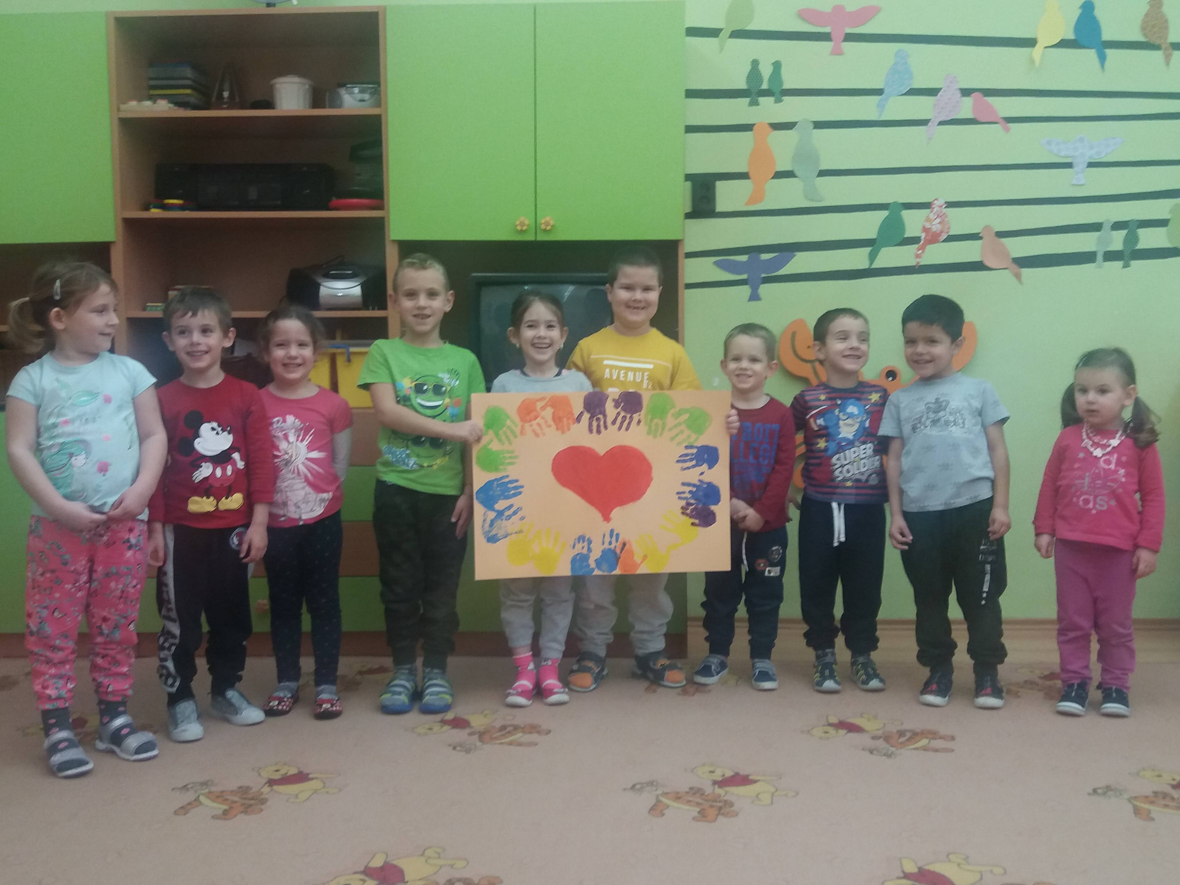 Ezeket a gyakorlatokat a gyerekek nagyon szeretik. Majd meghallgattuk Bagdi Bellától a Világomban minden rendben van c. számot, amit a 2. meghallgatás után mozgással kísértünk. Annyira élvezték a gyerekek, hogy videó is készült róla. Elbáboztam a süni irigy lesz c. mesét. Megbeszéltük, hogy milyen fontos, hogy vagyunk egymásnak. Úgy tűnt a gyerekeken, hogy ezt megértették, mert nagyon jó ötleteik voltak a társas kapcsolatok ápolására. Kört alkotva add tovább c. játékot játszottunk. Pl. add tovább a melletted ülőnek az ölelést. Meglepően tapasztalták, hogy egy ölelés mennyire jólesik. Lehetett látni rajtuk, hogy boldogok voltak tőle.